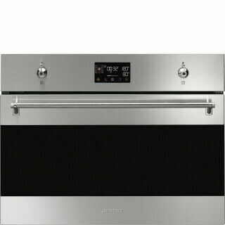 Премиальный духовой шкаф из дизайнерской серии Classica производится из качественных материалов с применением современных итальянских технологий компании SMEG. Модель имеет стандартную ширину и может размещаться в ячейке для встраиваемой бытовой техники размером 60 см. Внешний вид духовки - современный, она отлично подходит множеству популярных интерьеров. Фасад модели изготавливается с применением закаленного стекла Eclipse и матовой нержавеющей стали с покрытием от появления отпечатков пальцев.