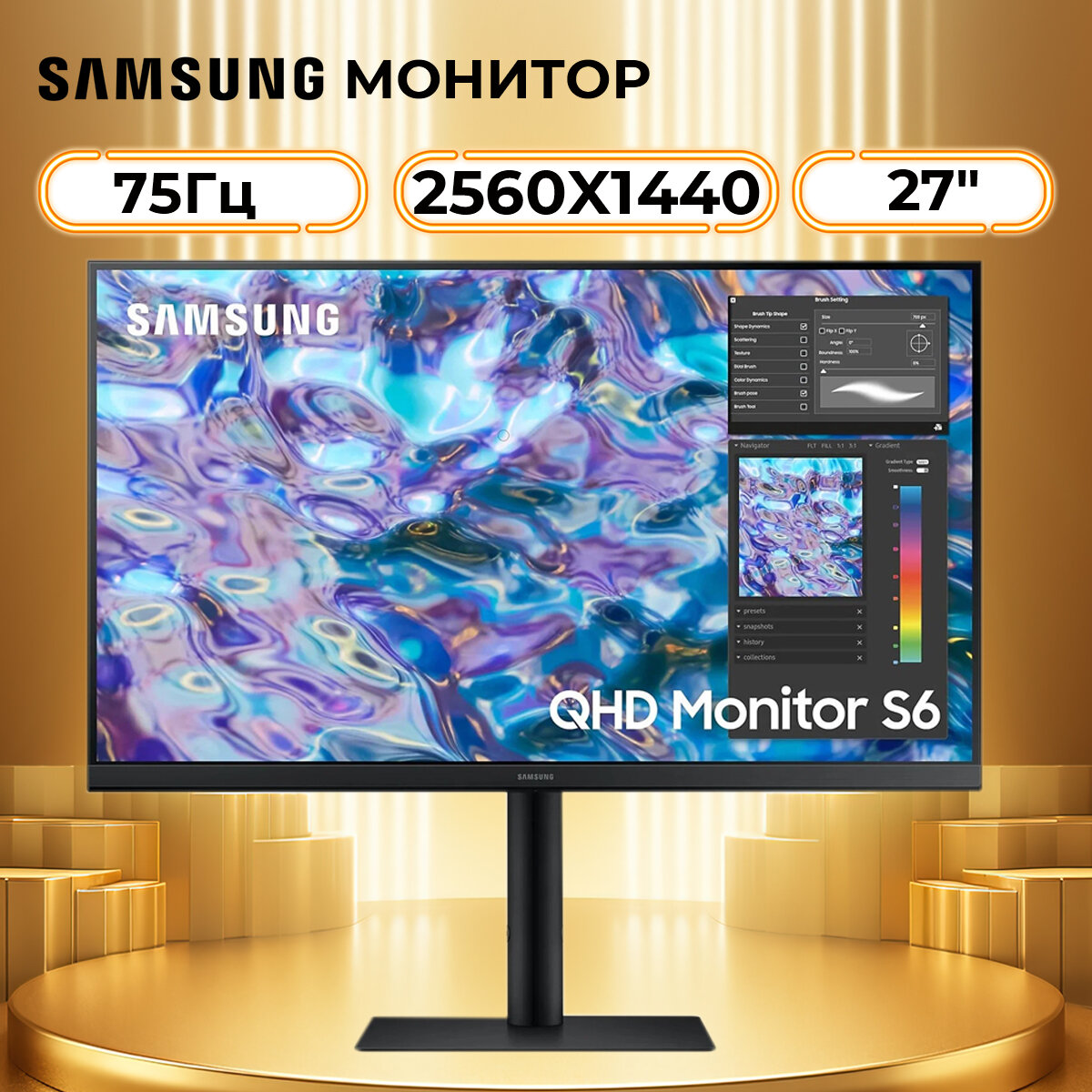 Монитор 27" Samsung LS27B610EQUXEN 2560х1440 75 Гц IPS черный
