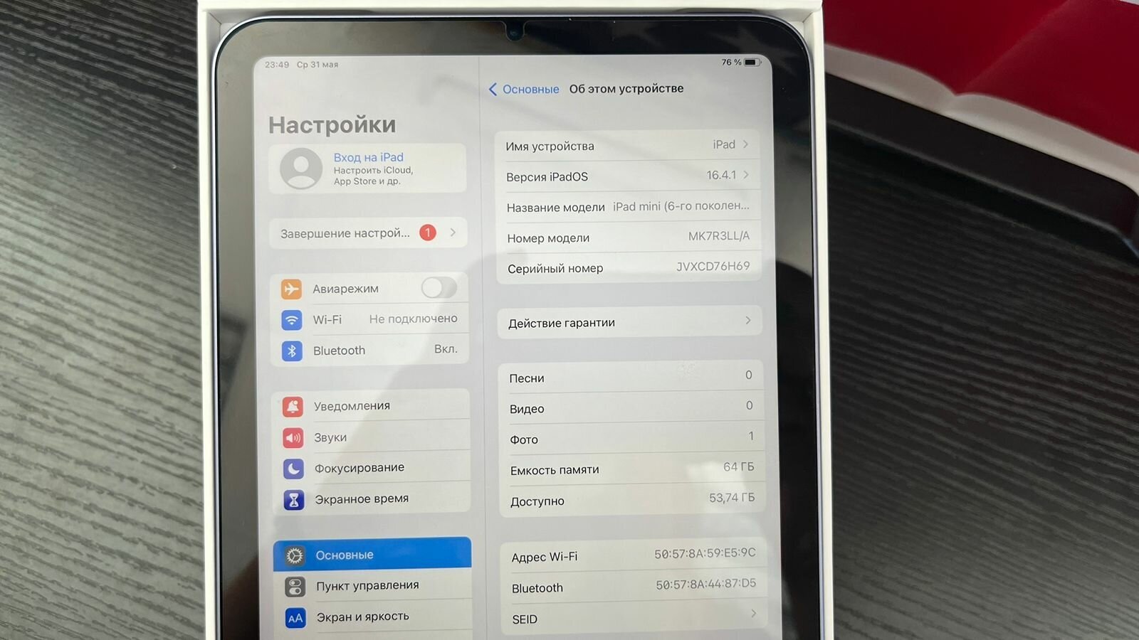 | Комплект поставки | iPad mini 2021, Кабель USB-C для зарядки (1 м), Адаптер питания USB-C мощностью 20 Вт |