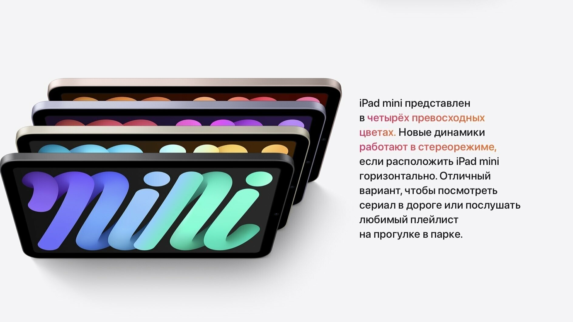 Великолепный дисплей Liquid Retina с диагональю 8, 3 дюйма занимает всю переднюю панель. Экран стал больше, но устройство осталось компактным и помещается у вас на ладони. Apple Pencil теперь можно примагнитить к боковой поверхности iPad mini — так он будет всегда под рукой. Новый чип A15 Bionic и аккумулятор, которого хватит на целый день, — с ними вы можете работать, творить и играть где угодно.