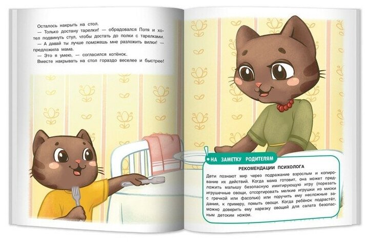 Слушая познавательную историю, ребёнок невольно будет ассоциировать себя с милым котёнком, и тем самым книга послужит помощником для родителей.