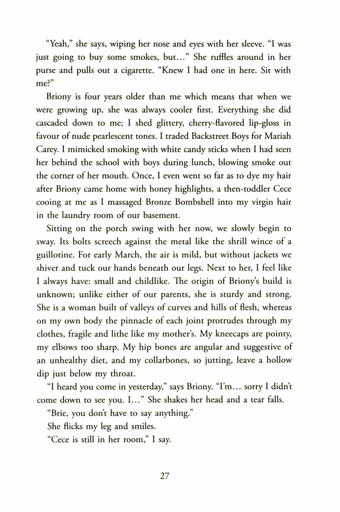 When a call from one of her sisters brings Cassandra news of Chevy's death, she has to return home for the funeral. To Toronto and the big house on Florence Street, where her sisters are hiding more than themselves in their rooms, where the tension brewing between her mother and aunts has been decades in the making, and where sooner or later every secret, unspoken word and painful memory will find its way out into the open.