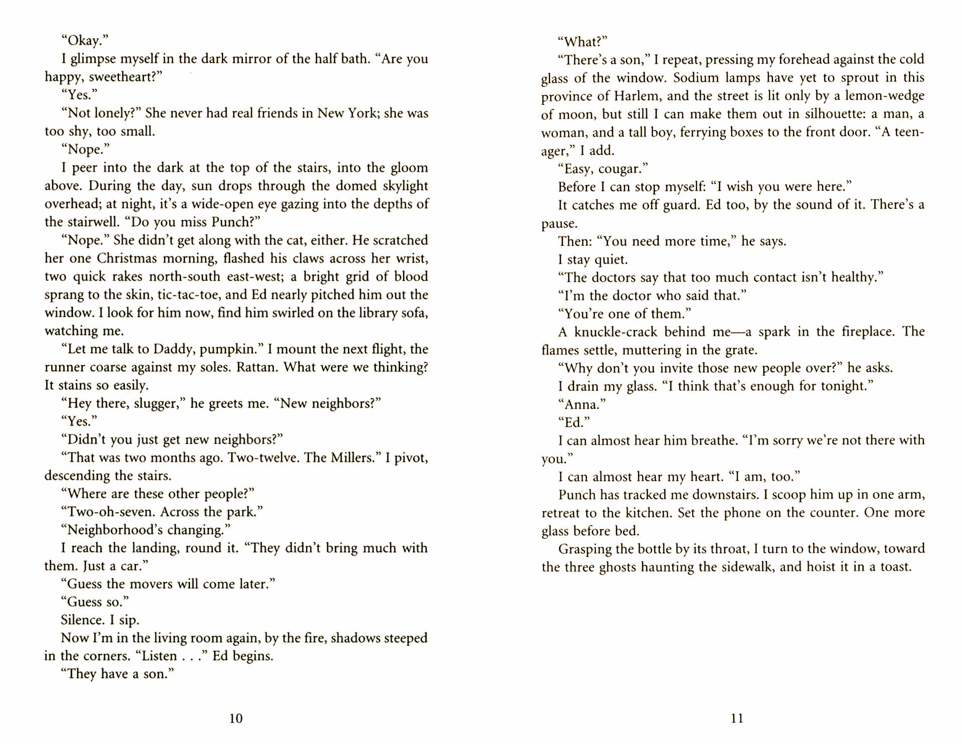 Моя любимая часть этого романа - стиль повествования. У Финна идеальная проза, которая заставляет вас думать: “Как кто-то может на самом деле так думать? Как кто-то формирует слова, чтобы проиллюстрировать такой идеальный отрывок?” Я и не знала, что обычные вещи можно так описать. Красивый почерк. ОЧЕНЬ КРАСИВЫЙ. Я не из тех читателей, которые зацикливаются на этом, но я обнаружила, что часто останавливаюсь во время чтения, просто чтобы оценить огромный талант, которым обладает Финн. Я буквально прочитаю все, что напишет этот человек.