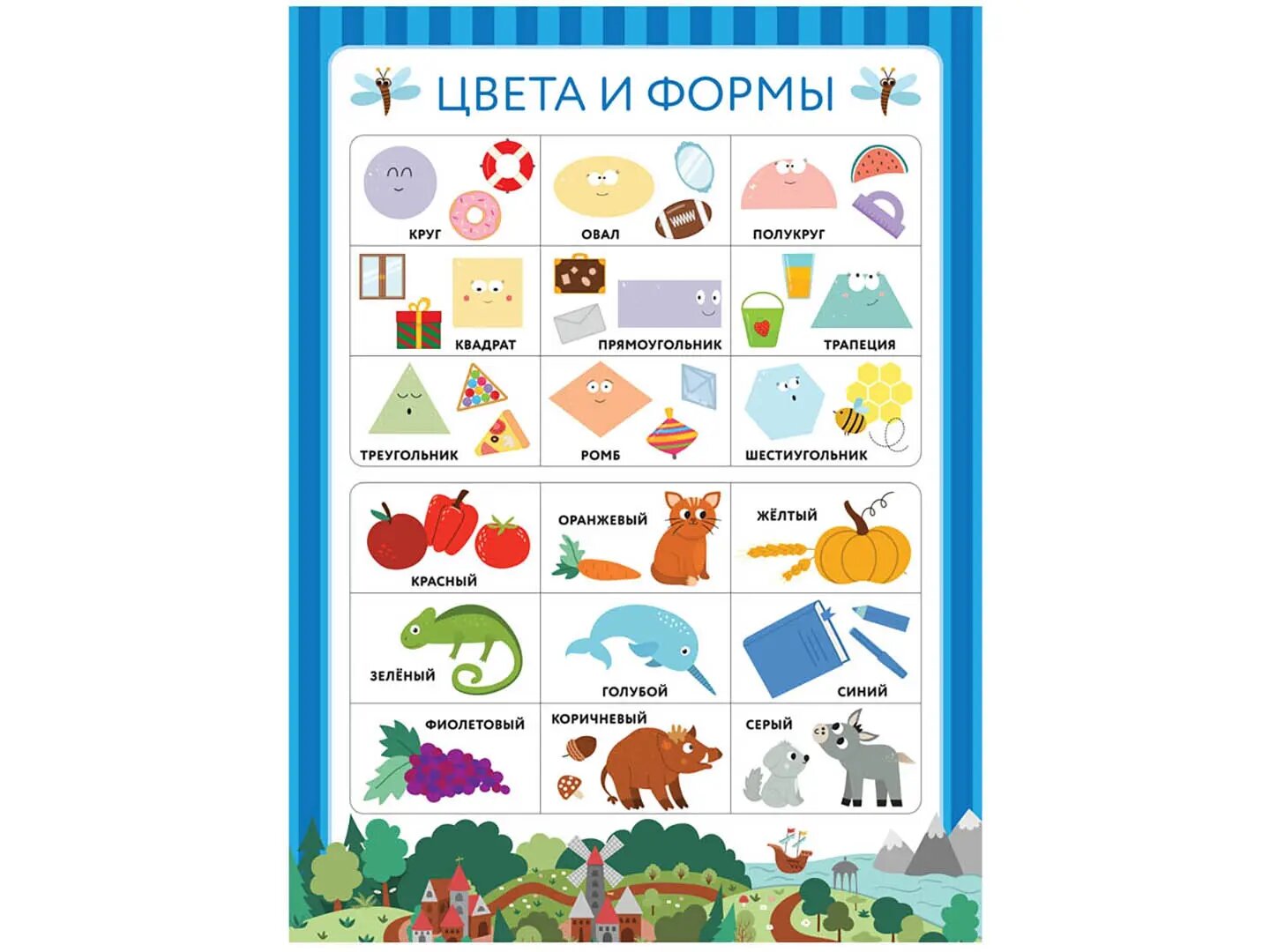 В этой удивительной папке - 10 ярких развивающих плакатов на базовые темы, которые должен освоить каждый малыш! Их легко достать из удобной папки, а затем убрать обратно.