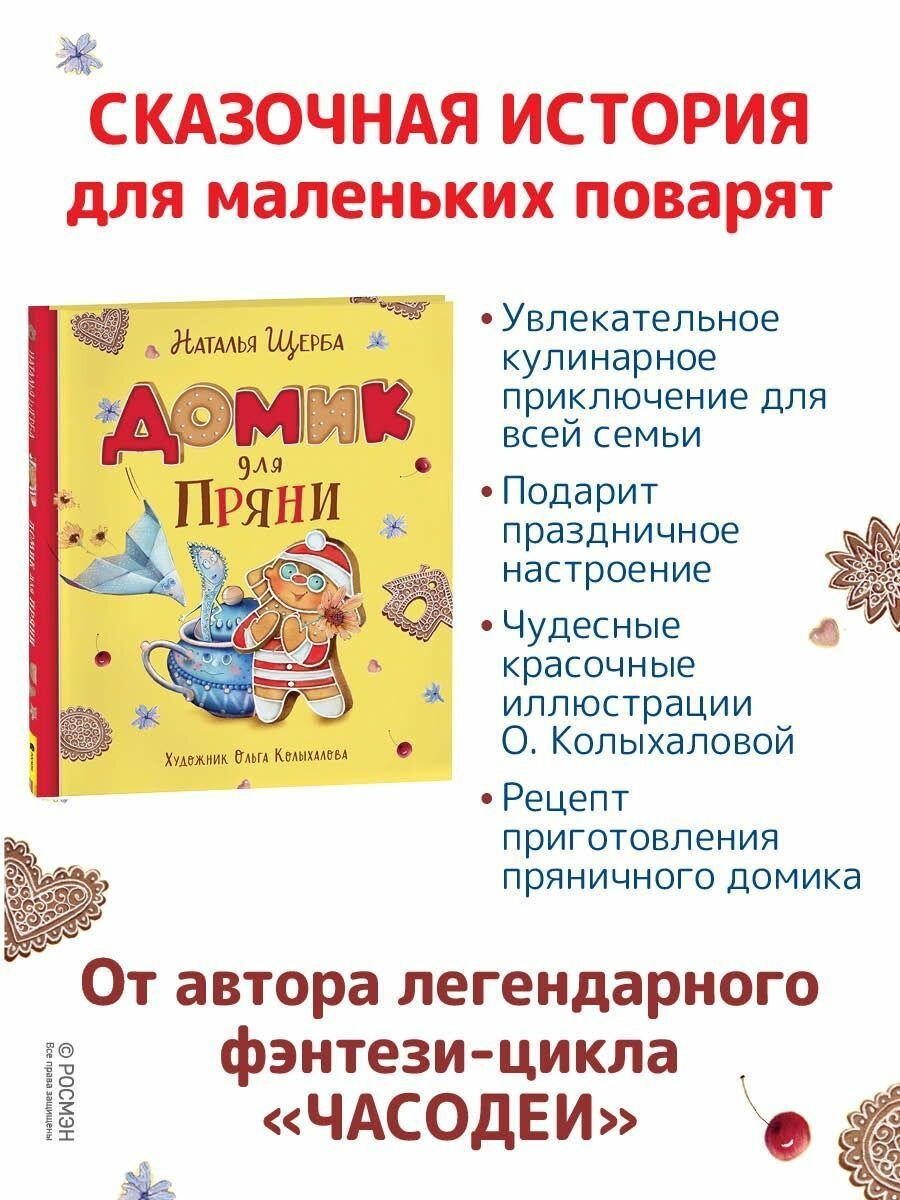 Какая же красивая книга! Ярко оформленная, богато иллюстрированная, очень аппетитная. Кажется, аромат пряных специй ощущается, когда листаешь её. Несомненно, книга сподвигнет к совместному творчеству на кухне в канун новогодних праздников. Остерегайтесь того, что ребёнок после прочтения обязательно попросит испечь имбирный пряничный домик, \"как в книжке\". Благо, что рецепт имбирного теста искать не придётся)