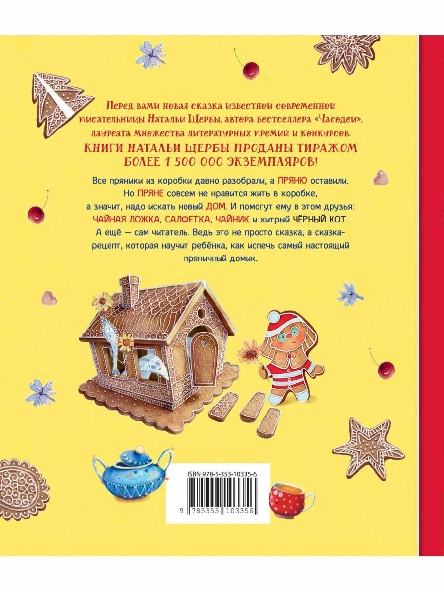Все пряники из коробки давно разобрали, а Пряню оставили. Но Пряне совсем не нравится жить в коробке, а значит, надо искать новый дом. И помогут ему в этом новые друзья: чайная ложка, салфетка, чайник и хитрый черный Кот. А еще — сам читатель. Ведь это не просто сказка, а сказка-рецепт, которая научит ребенка, как испечь самый настоящий пряничный домик.