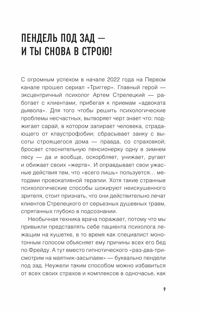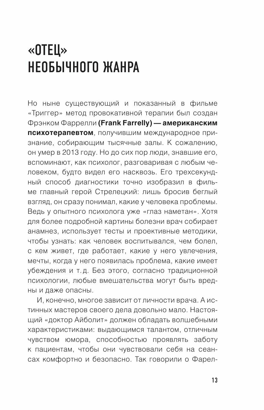 Основа книги – идея сериала «Триггер» про психолога-провокатора, использующего нестандартные шоковые методы.