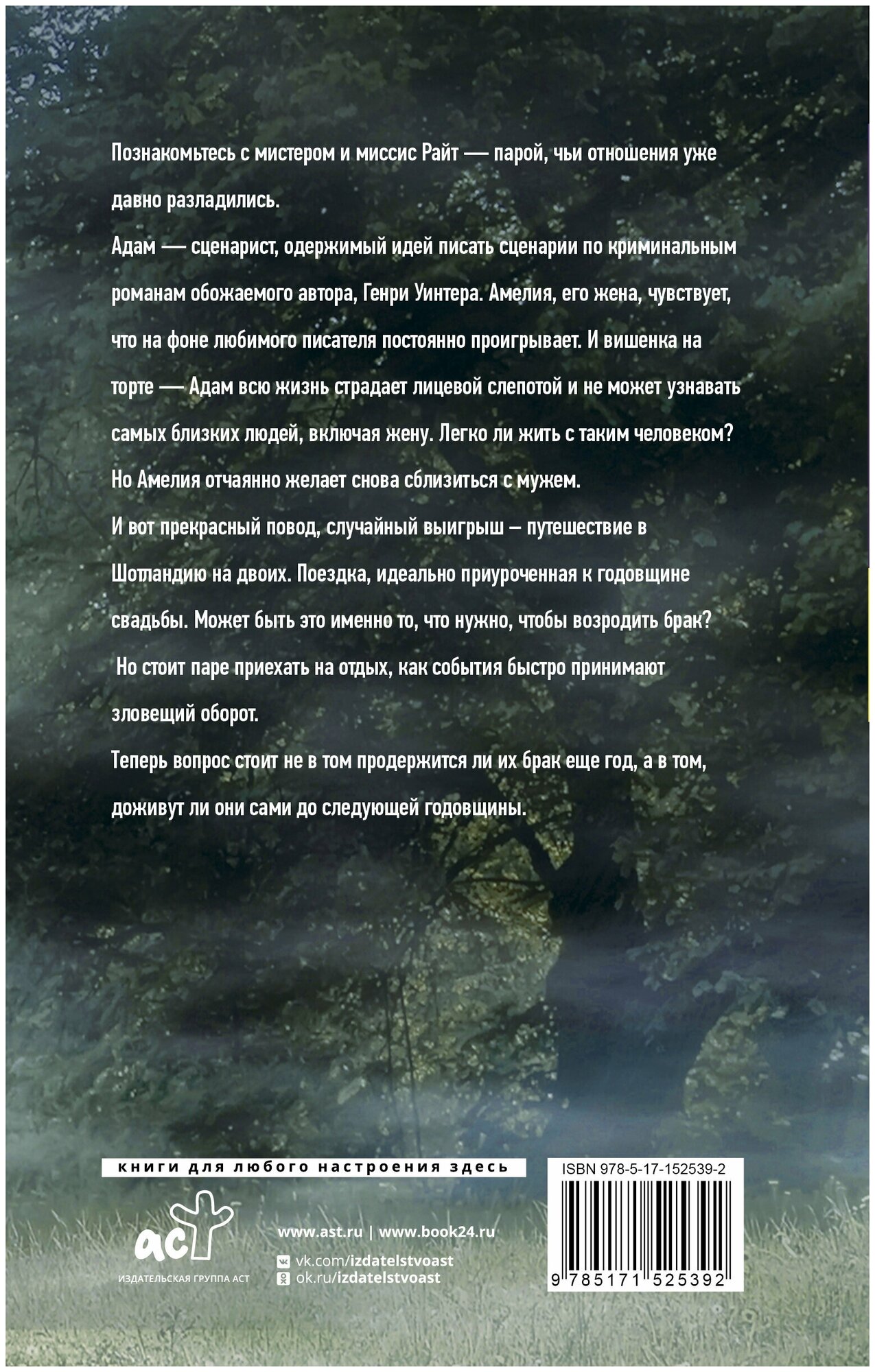 Книгу купила наугад. Не совсем понимая, что это, психологический триллер или детектив. Читается быстро, легко. Сюжета по сути никакого нет. Основное повествование сводится ко взгляду на брак с одной и другой стороны. Я понимаю, что автор хотел сохранять интригу до конца, но финал стал понятен для меня слишком рано. Пара приезжает к черту на рога и не может уехать. Кто и для чего их туда заманил? На этот вопрос ответ будет, а вот на множество других нет. Твердая обложка, тонкие листы за счет чего книга не смотря на толщину весит мало. Встречаются опечатки в тексте, но этим грешат уже кажется все книги. За 600 руб. брать не стала бы.