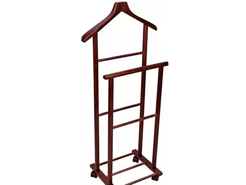 Натуральная древесина обладает приятным запахом, поэтому придает помещению дополнительную свежесть. Глянцевая поверхность защищена от царапин и сколов благодаря лаковому покрытию. Вешалка оснащена двумя рейлами, которые позволяют развесить сразу несколько предметов гардероба.