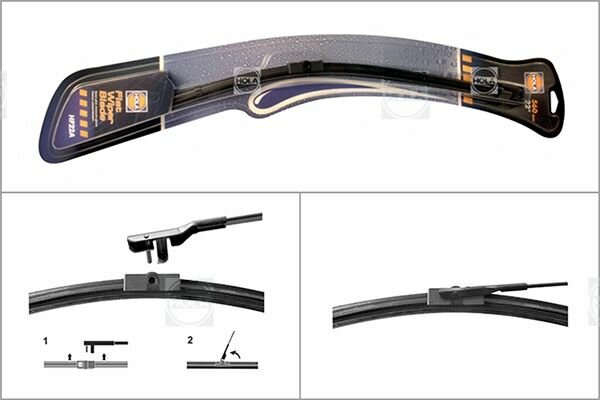 Бескаркасная щетка стеклоочистителя HOLA предназначена для механической очистки стекол автомобилей от снега, воды, дорожной грязи и других загрязнений. Состоит из резинового элемента, в пазы которого вложена упругая пластина (пружина) из нержавеющей стали.