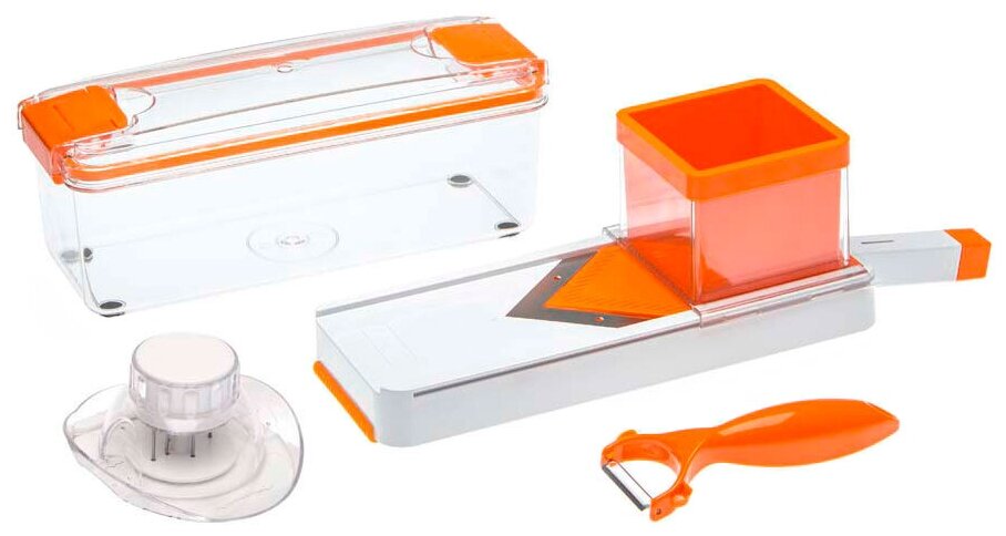 | Состав набора | контейнер с крышкой, держатель для нарезки соломкой, держатель для нарезки плоскими ломтиками и нож для чистки овощей |