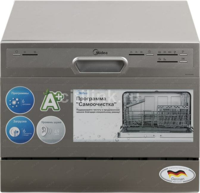 Компактная посудомоечная машина Midea позволяет вымыть за одну загрузку до 6 комплектов посуды. Она обеспечивает высокое качество и позволяет владельцам отдохнуть или заняться другими делами. большой выбор программ В этой модели предусмотрены различные программы, позволяющие владельцам не задумываться над установкой времени, температуры воды и других параметров.