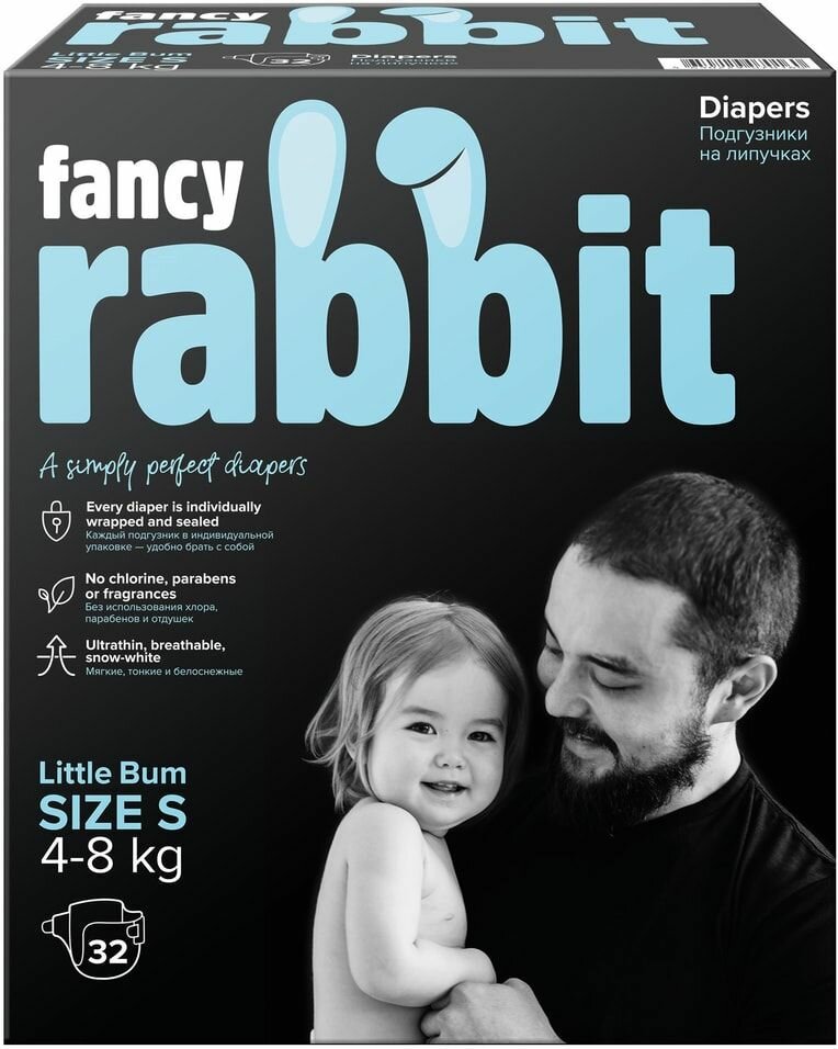 Подгузники на липучках Fancy Rabbit 4-8 кг S 32 шт FR_32_P_S_48 (размер: 2/S (3-6 кг))