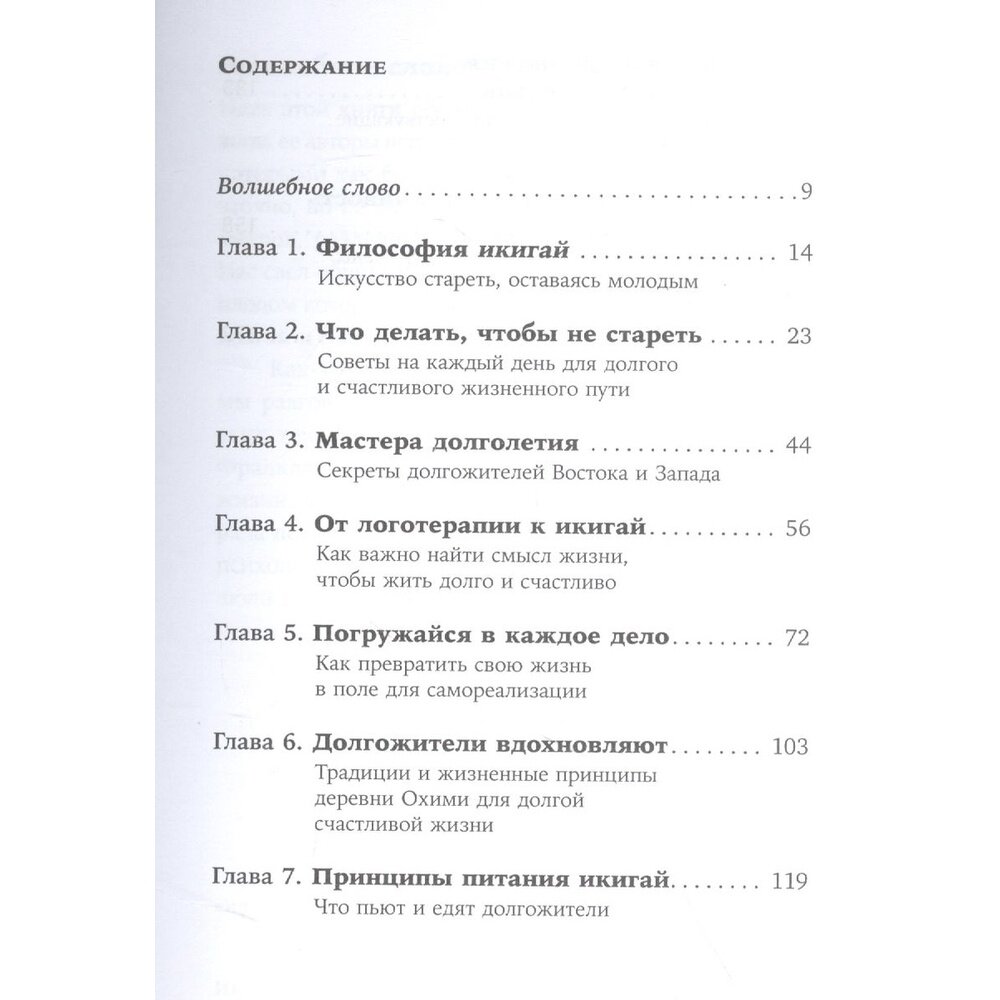 Ответ оказался простым: помимо здорового питания, оптимального режима дня и у каждого жителя деревни был свой икигай. Авторы книги делятся с читателями способами его обретения.