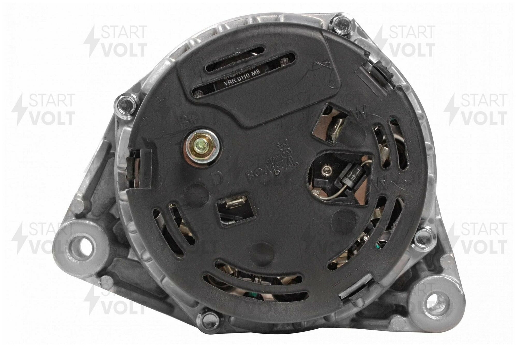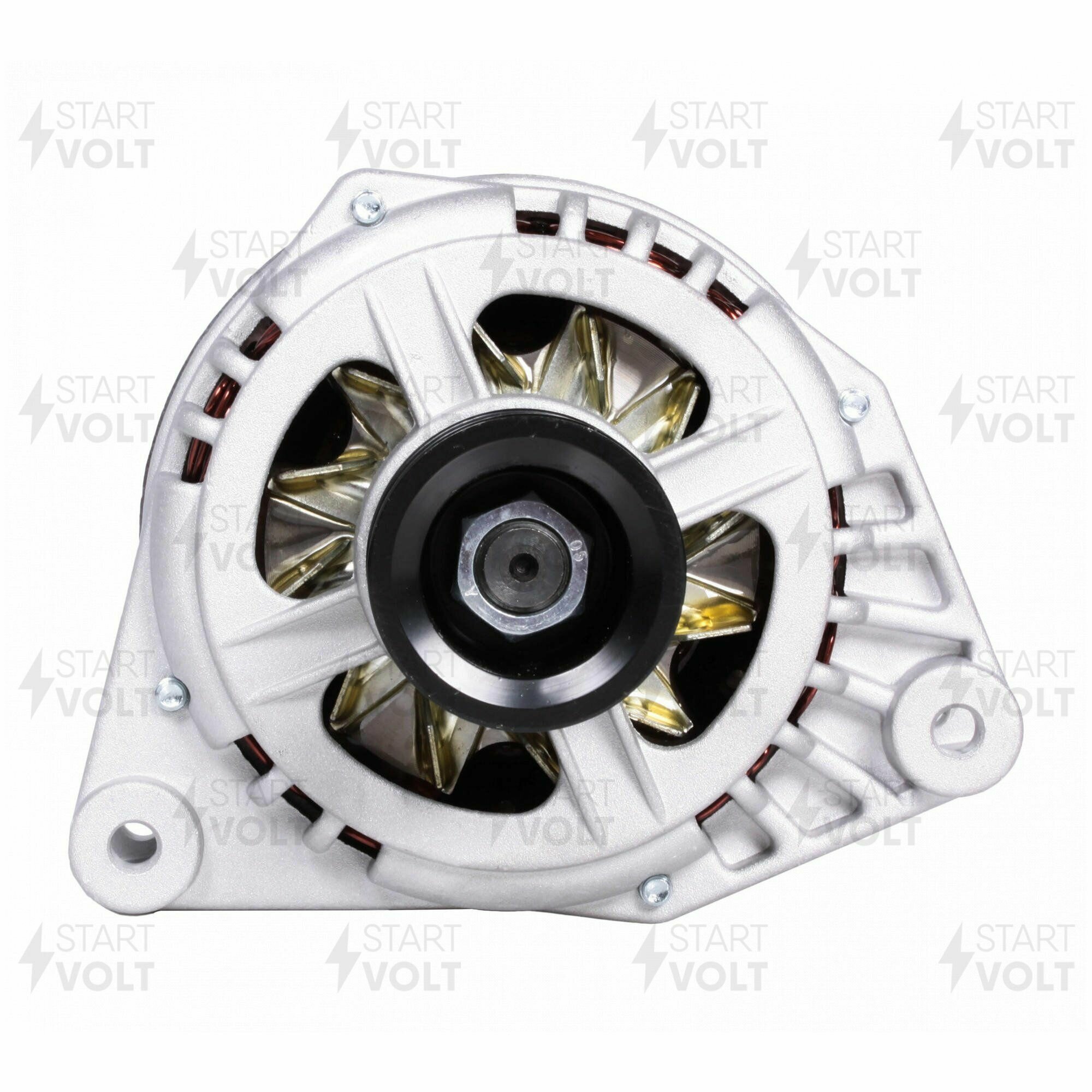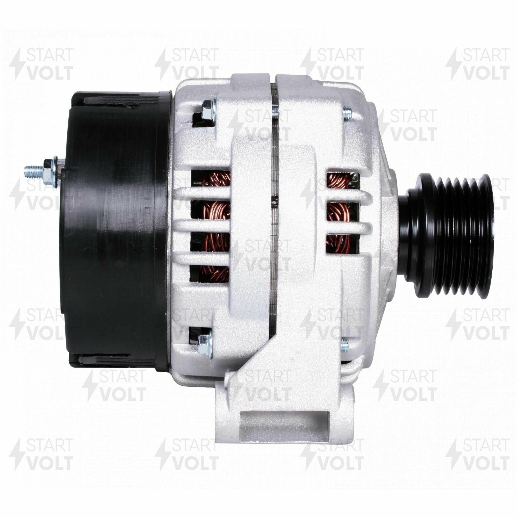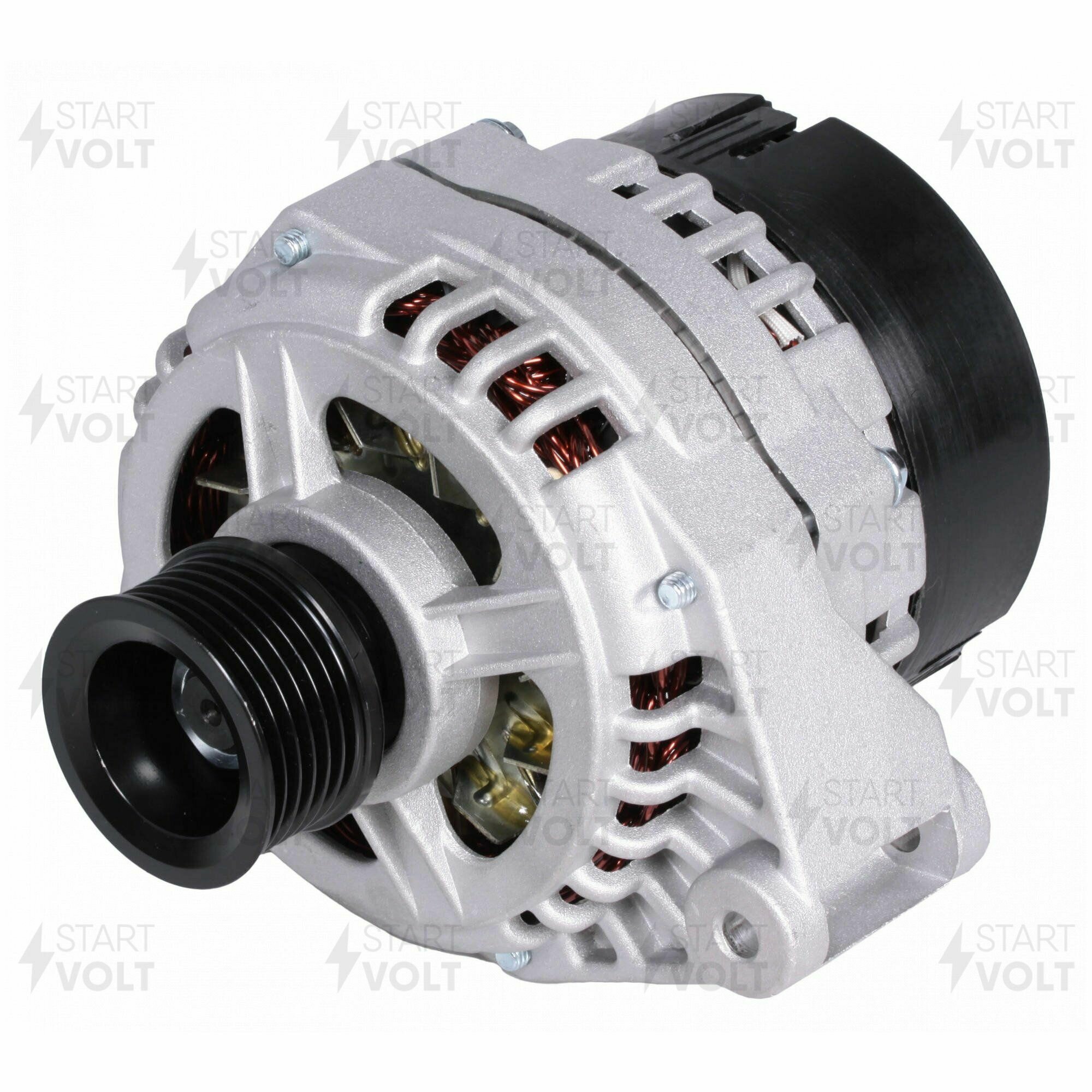 Генераторы СтартВОЛЬТ превосходят аналоги на 60-120% по выходным характеристикам (серии 80А для карбюраторной и инжекторной классики и 120А для инжекторных моделей ВАЗ, ГАЗ, УАЗ) В комплект к каждому генератору идет инструкция по диагностике и установке, а также индивидуальный технический паспорт отражающий все основные характеристики данного конкретного генератора (дополнительное свидетельство о 100%-ном выходном контроле) Изменена геометрия полюсной системы ротора, изменено количество витков обмотки. В результате увеличилась сила магнитного поля. Уменьшен зазор между ротором и статором. Двойная пропитка бакелитовым лаком защищает ротор от атмосферных воздействий. Токосъемные кольца сделаны из электротехнической меди улучшенного качества. С марта 2013 года во всех генераторах СтартВОЛЬТ применяется регулятор напряжения нового типа с чипом (монокристалльная конструкция). Применен мировой стандарт – 14.6 В – наилучший режим для автомобильных бортовых сетей. Диодный мост содержит в себе выпрямитель для 3-фазной системы соединенной звездой. В отличие от штатного, содержит 8 силовых диодов (в штатном 6 диодов). Используются специальные диоды японского производства, которые не выгорают при коротком замыкании. Технология присоединения выводов обмотки статора с диодами выпрямительного блока путем первоначального обжима с последующей пайкой. Пайка осуществляется высокотемпературным припоем, стойким к кислотам и щелочам. Окончательно соединение покрывается кремнеорганическим лаком. Обмотка возбуждения (ротора) и обмотка статора после намотки подвергается двойной вакуумной пропиткой специальным бакелитовым лаком, защищающим от атмосферных воздействий. Своя особенность у конструкции коллектора ротора. Коллектор жестко зафиксирован в пазах (лысках) вала, что исключает вероятность проворота токосъемных колец вокруг оси и обрыв провода обмотки возбуждения.