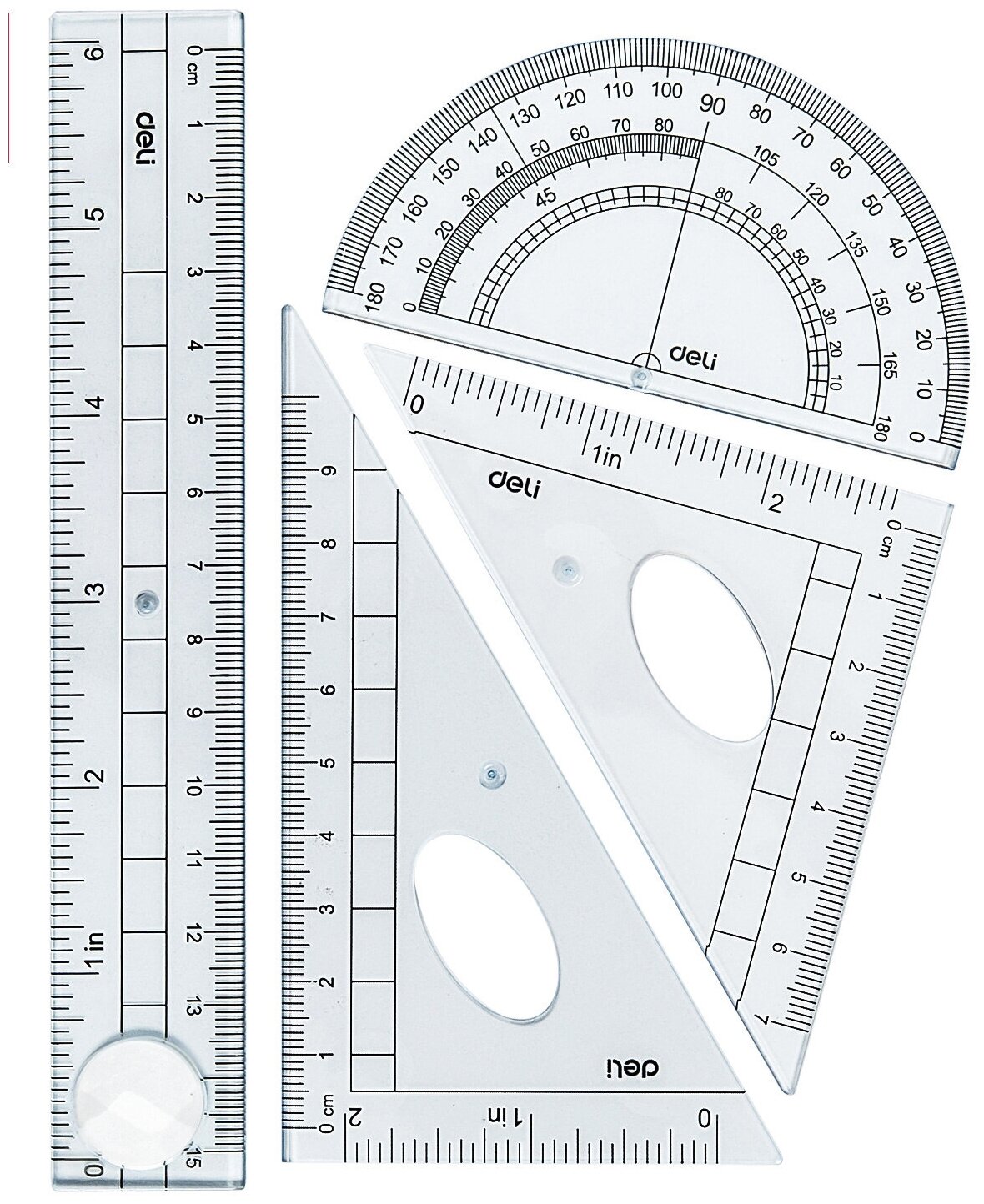 Набор линеек Deli прозрачный компл.:лин.15см./треуг.2шт./трансп. E9597