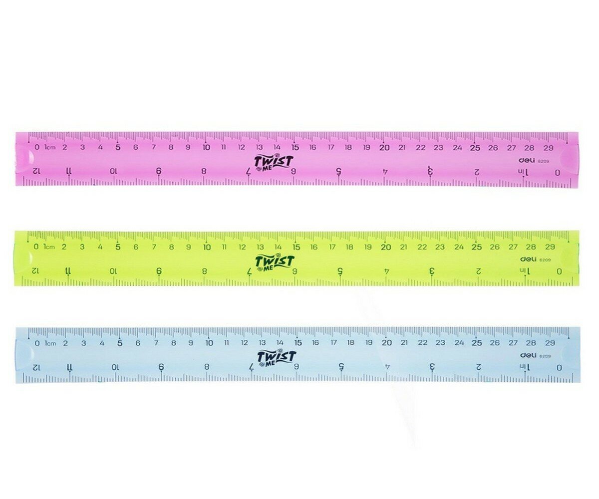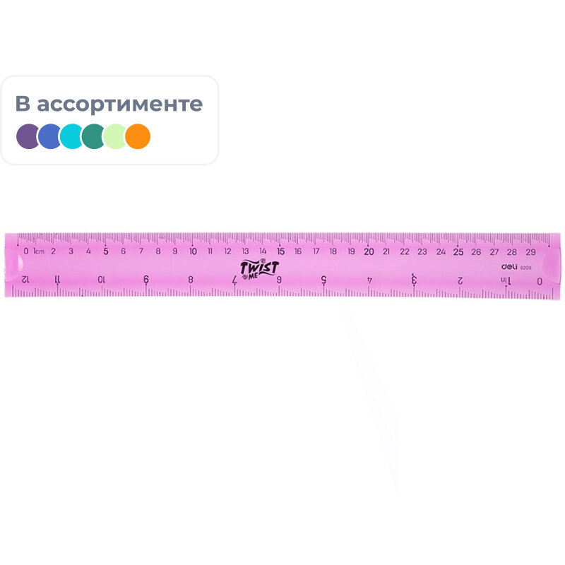 Линейка Deli пластик дл.30см ассорти гибкая/двухсторонняя шкала E6209