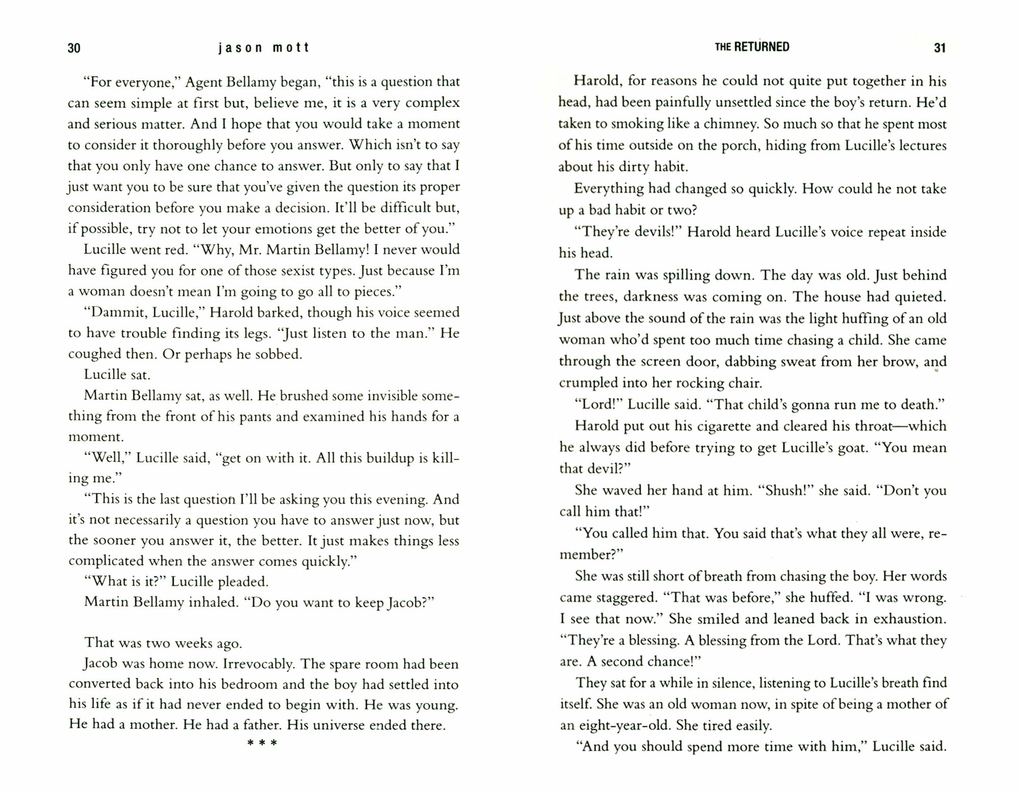 Lucille Hargrave's son Jacob has been dead for over forty years. Now he's standing on her doorstep, still eight years old. Still looking for her to welcome him with open arms.