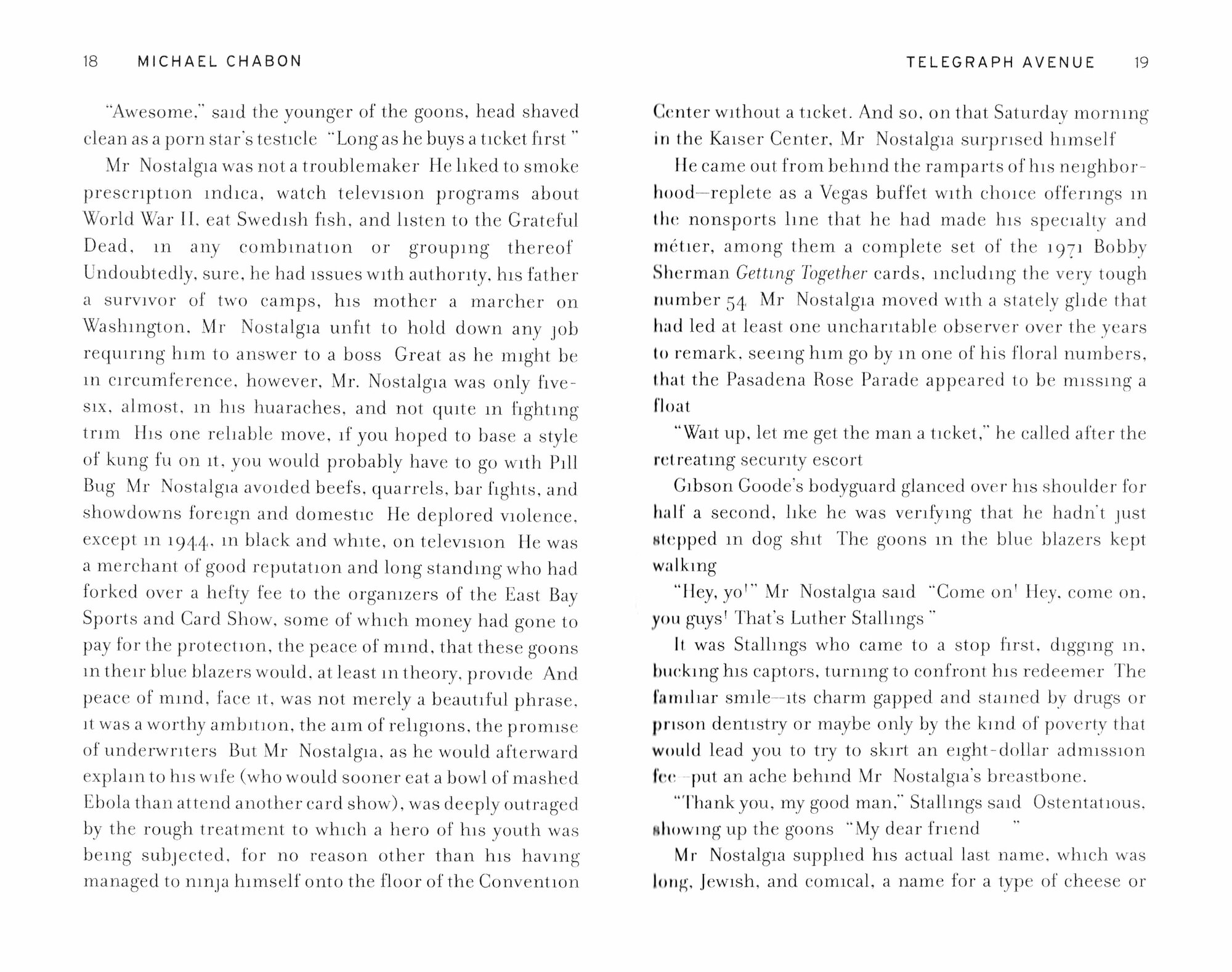 When ex-NFL quarterback Gibson Goode, the fourth-richest black man in America, announces plans to go forward with the construction of his latest Dogpile megastore on a nearby neglected stretch of Telegraph Avenue, Nat and Archy fear it means certain doom for their vulnerable little enterprise. What they don't know is that Goode's announcement marks the climax of a decades-old secret history, encompassing a forgotten crime of the Black Panther era, the tragedy of Archy's own deadbeat father – a long-faded Blaxploitation star named Luther Stallings – and the perpetual shining failure of American optimism about race. As their husbands struggle to mount a defense, at Berkeley Birth Partners Aviva and Gwen also find themselves caught up in a battle for their professional existence, one that tests the limits of their friendship. Adding another layer of complication to their already tangled lives is the surprise appearance of Titus Joyner, the teenaged son Archy has never acknowledged, and the love of Julius Jaffe's life.