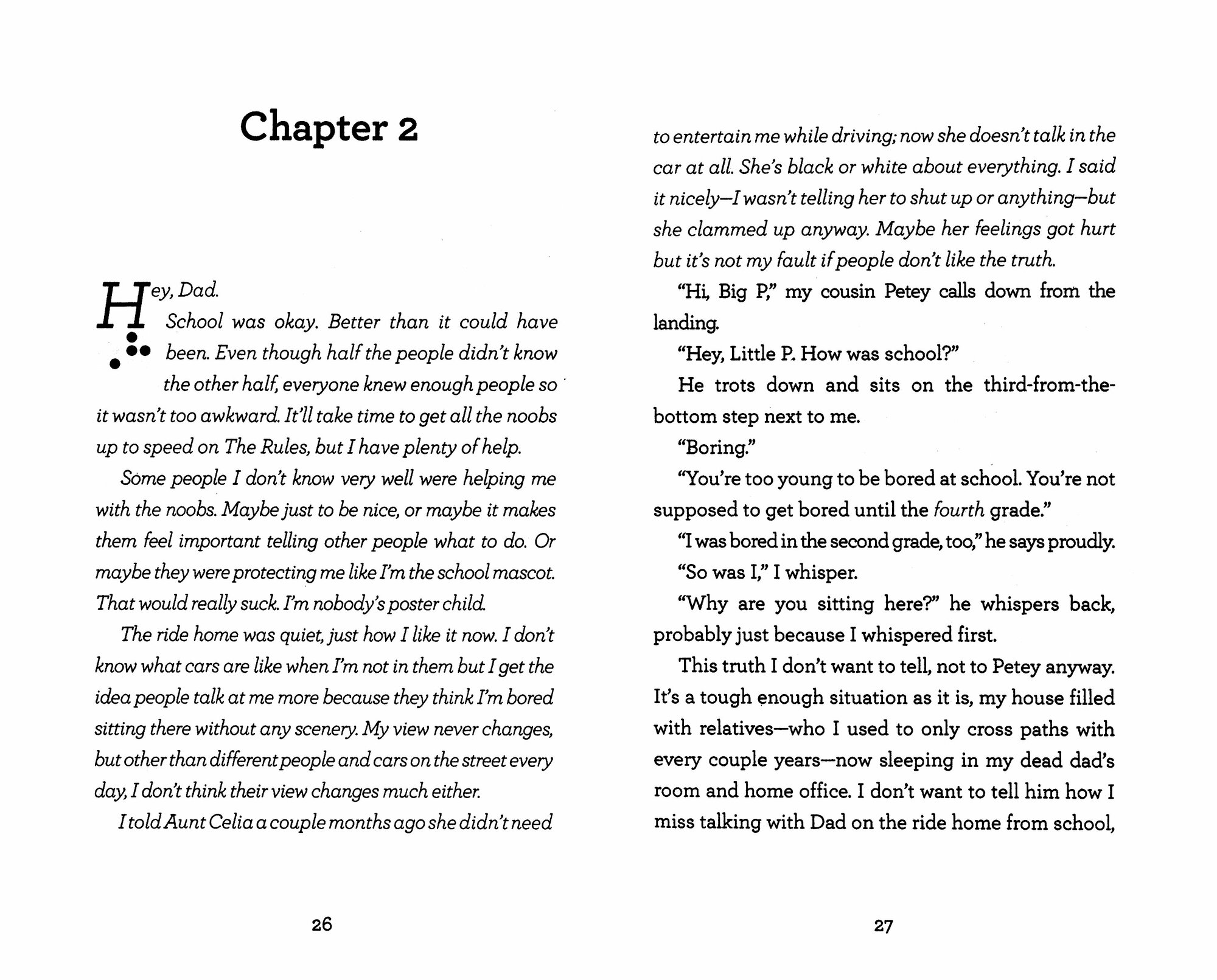 When Scott Kilpatrick, the boy who broke her heart, suddenly reappears at school, Parker knows there's only one way to react – shun him so hard it hurts. She has enough to deal with already, like trying out for the track team, handing out tough-love advice to her painfully naive classmates, and giving herself gold stars for every day she hasn't cried since her dad's death. But avoiding her past quickly proves impossible, and the more Parker learns about what really happened – both with Scott, and her dad – the more she starts to question if things are always as they seem.