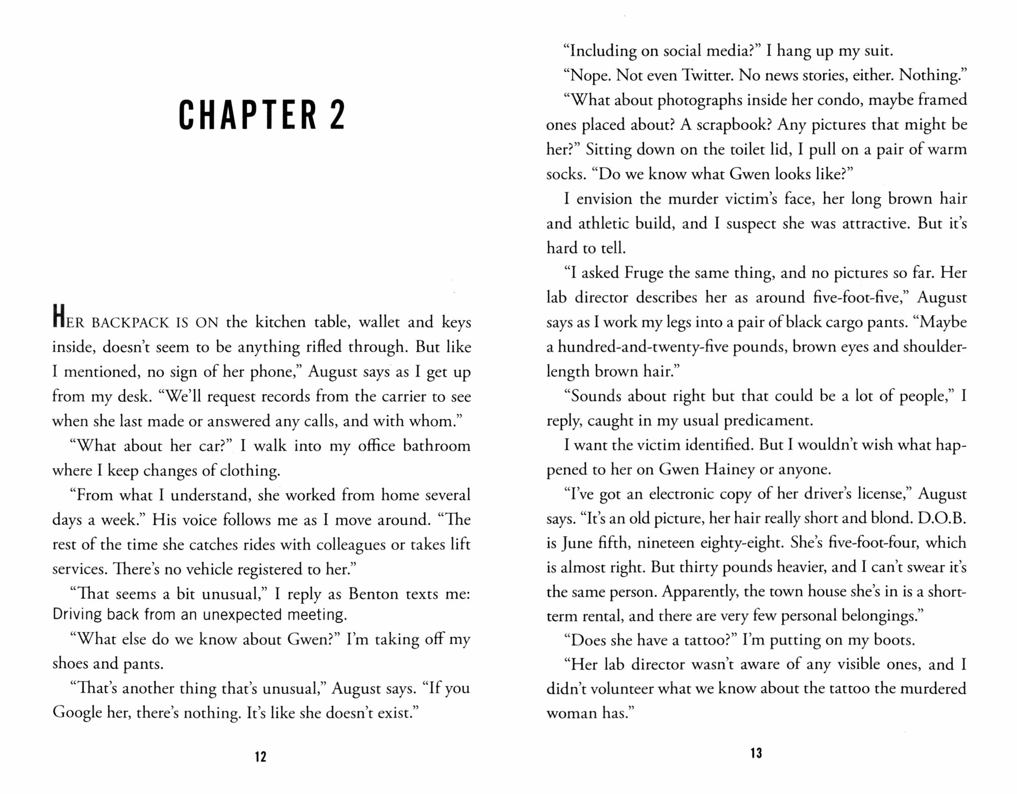 Just weeks into the job, Scarpetta is called to a railway track where a woman's body has been shockingly displayed, her throat cut down to the spine. But the trail of clues will lead Scarpetta back to her own neighbourhood.