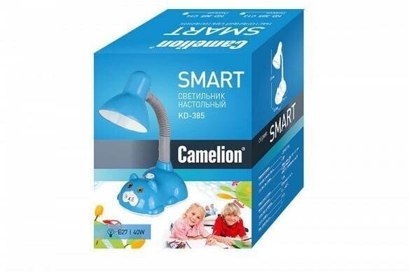 Настольная лампа Camelion . Подчеркнет стиль помещения. Размеры 17.5x14.5x35 cm. Параметры пылевлагозащиты IP — 20. Плафон металлический голубого цвета, а материал/цвет арматуры пластик/голубой. Использует 1 лампу с цоколем E27. Страна происхождения бренда — Китай.