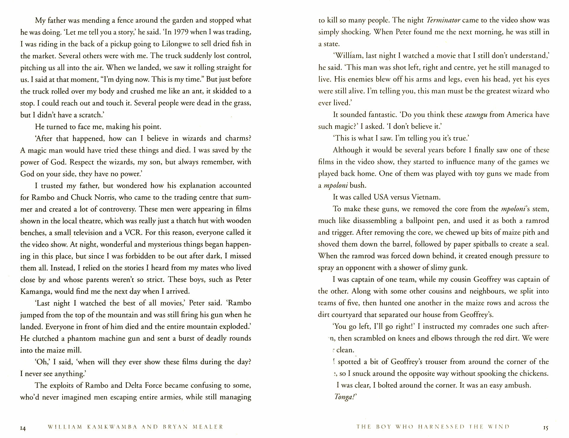 When William Kamkwamba was just 14 years old, his family told him that he must leave school and come home to work on the farm – they could no longer afford his fees. This is his story of how he found a way to make a difference, how he bought light to his family and village, and hope to his nation.