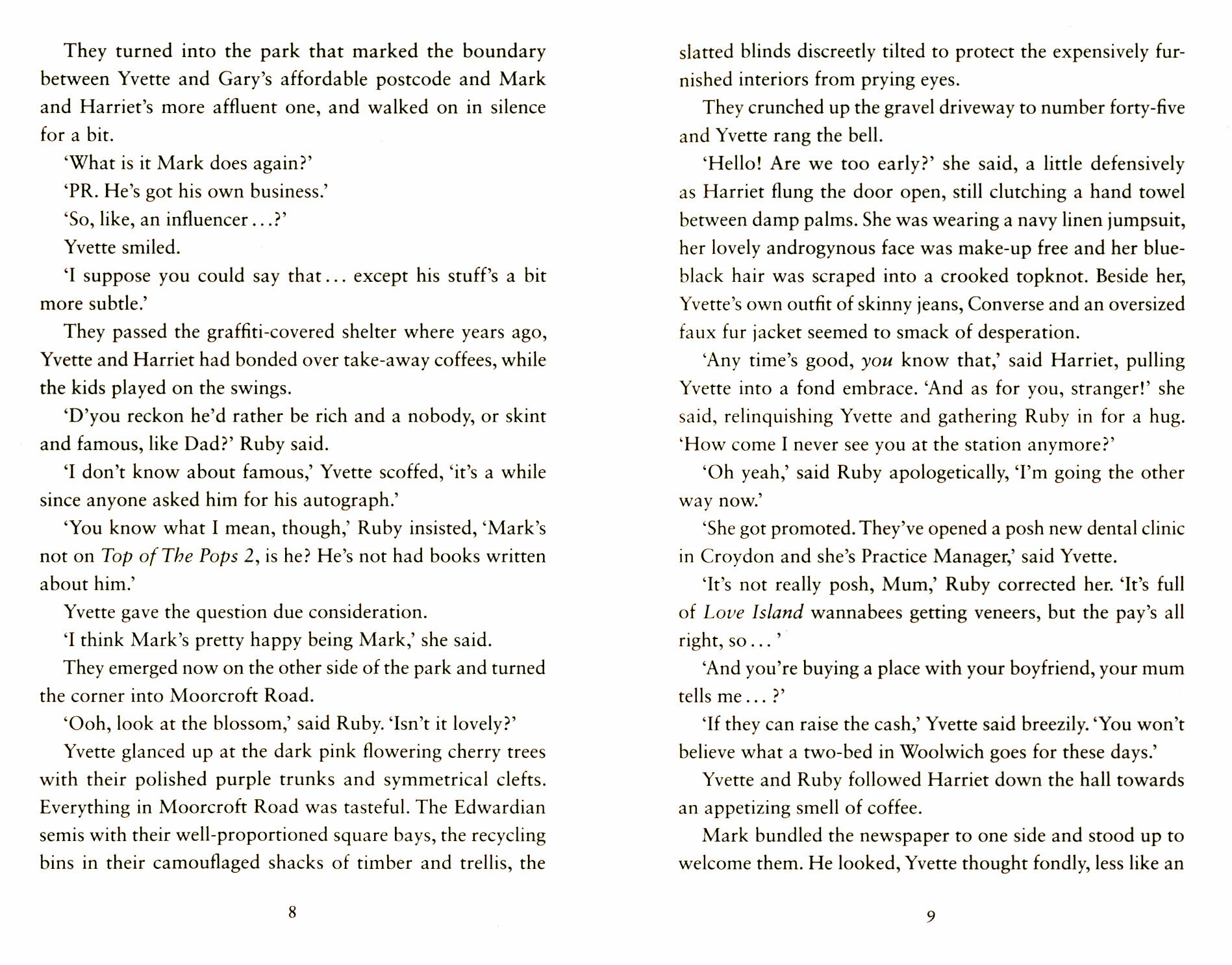Harriet and Mark have it all: successful careers, a lovely house in a leafy London suburb, twin boys on the cusp of leaving home. Yvette and Gary share a smaller place with their two daughters in a shabbier part of the same borough.