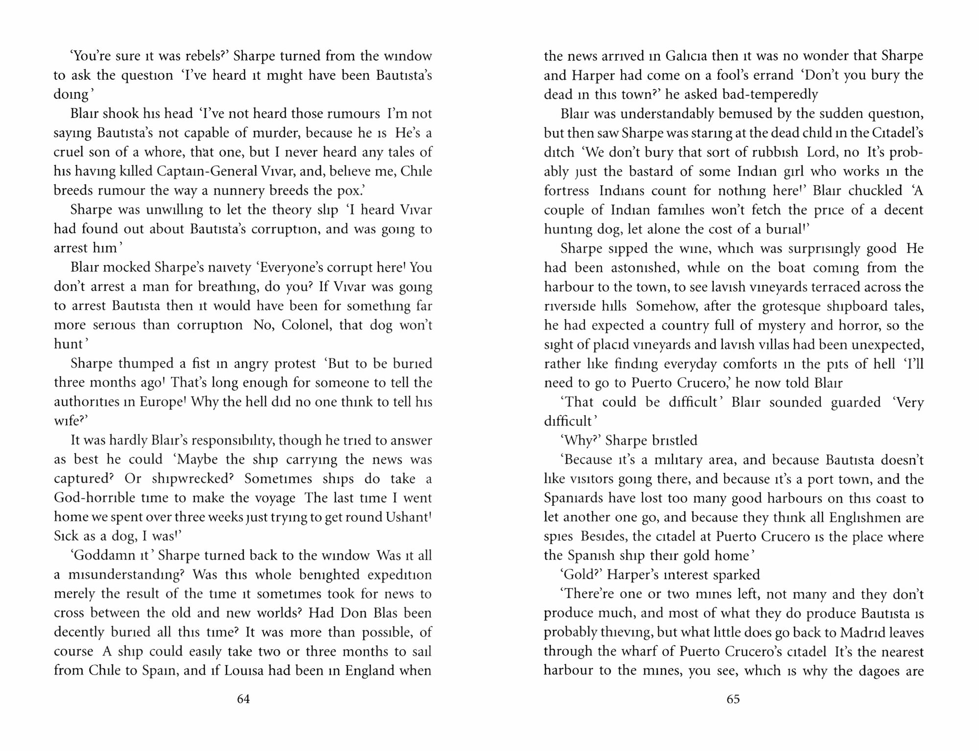 Five years after the Battle of Waterloo, Sharpe’s peaceful retirement in Normandy is shattered. An old friend, Don Blas Vivar, is missing in Chile, reported dead at rebel hands – a report his wife refuses to believe. She appeals to Sharpe to find out the truth.