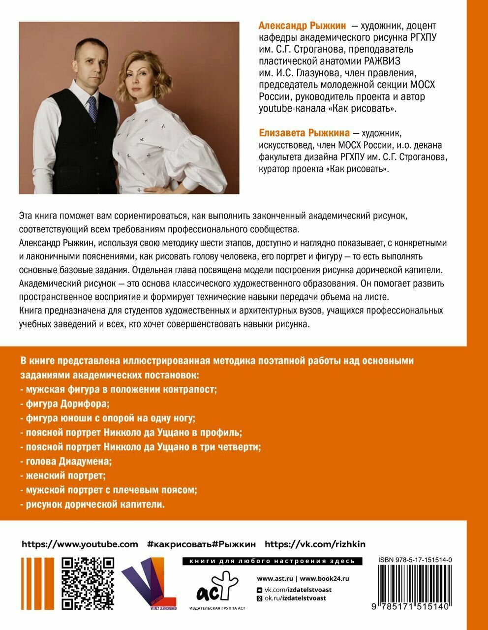 База академического рисунка. Рисуем фигуру человека голову и капитель (Рыжкин Александр Николаевич, Рыжкина Елизавета Николаевна); АСТ, 2023
