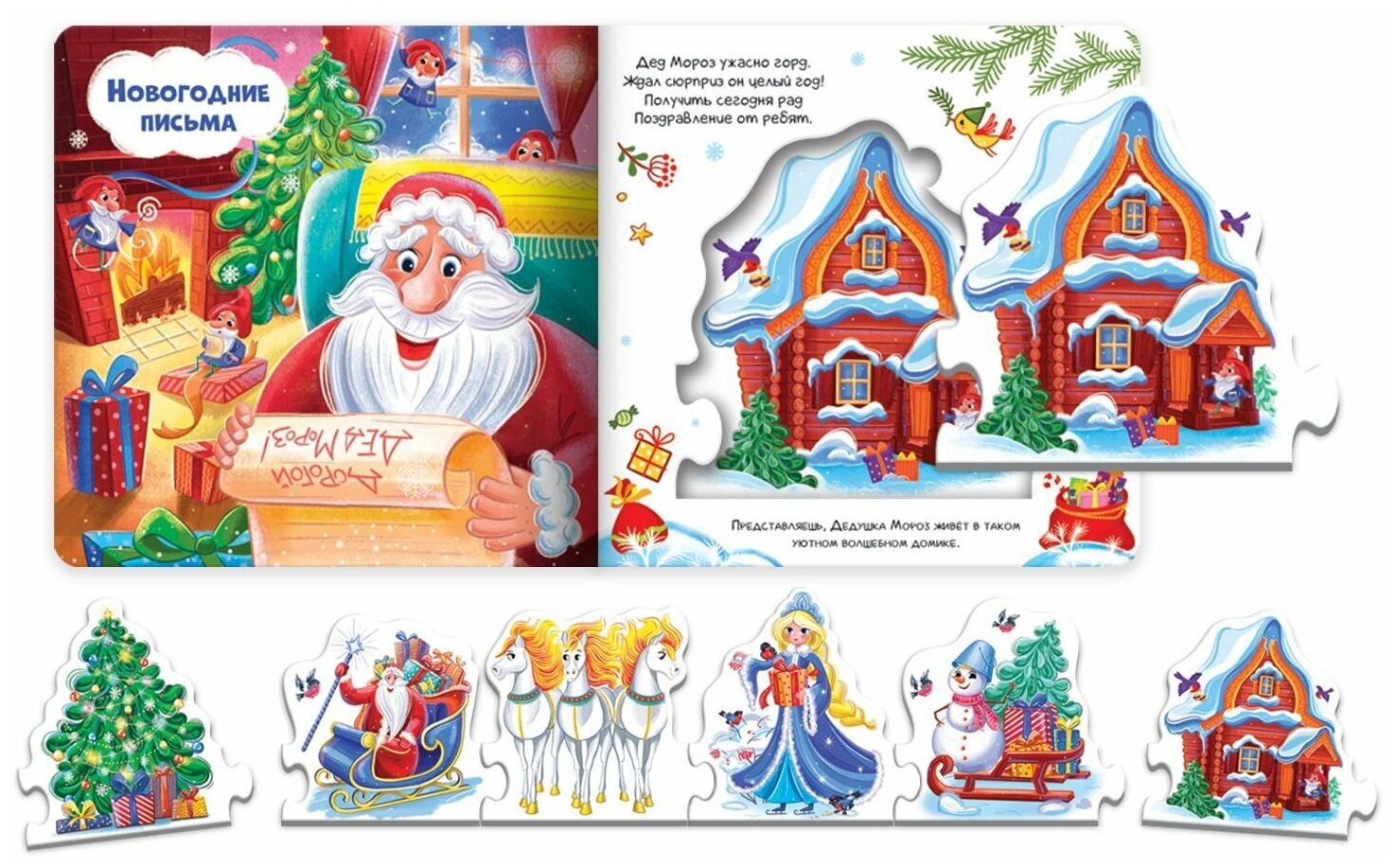 В книжке "Путешествие Деда Мороза" из серии "Чудо-пазлы" малыша ждут яркие иллюстрации, пазлы и весёлые новогодние стихи. В каждой книжке 6 макси-пазлов и 12 страниц из плотного картона.