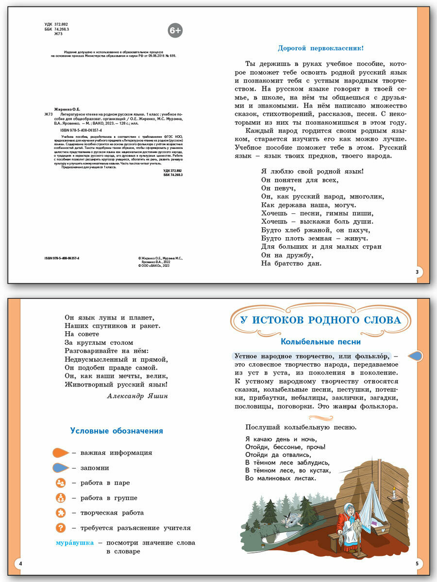Долго искала, чем дополнить школьную программу. Выбор пал именно на этот учебник. С ним отлично прорабатывается фольклорные темы нашего народа. Ребёнка очень заинтересовали пословицы на все аощможные темы, поговорки, песенки, шутливые стишки, считалки и скороговорки. Считаю, что необходимо сохранять наследие, передавать молодость поколению. Много народных примет и загадок.