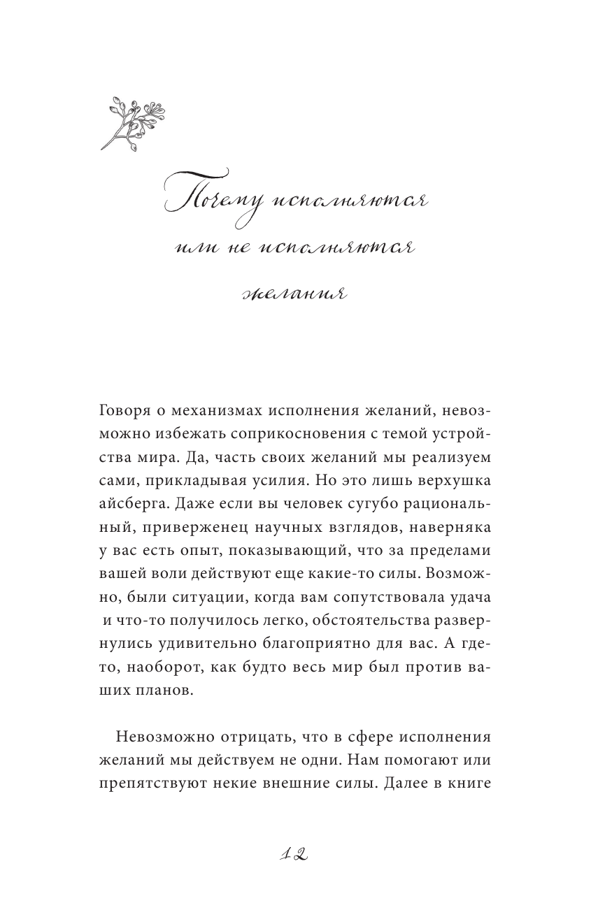 Желать - тоже работа, а эта книга поможет разобраться в себе и в своих желаниях. Недостаточно просто одной мечты, брошенной, точно камень в озеро, пуская "блинчики" по поверхности вселенной, для этого нужны усилия и совместная работа человека и окружающей энергии. Автор не просит выбирать свой путь "джедая" становясь или адептом магии, ожидая у моря погоды, пока исполнение желания не произойдёт или "достигатором", тягая свой камень, не дожидаясь никакой помощи от людей и мира. Автор использует психологические методы и графические таблицы, чтобы скурпулезно составить карту желаний, помогая людям по косточкам разобрать собственные внутренние требования и желания. Визуальные эффекты, тренинги, проговаривание собственных желаний, работа над собой, расстановка приоритетов, все это помогает не только исполнять желания, но и найти внутреннюю гармонию, понимать свои потребности, чтобы знать, куда двигаться дальше.