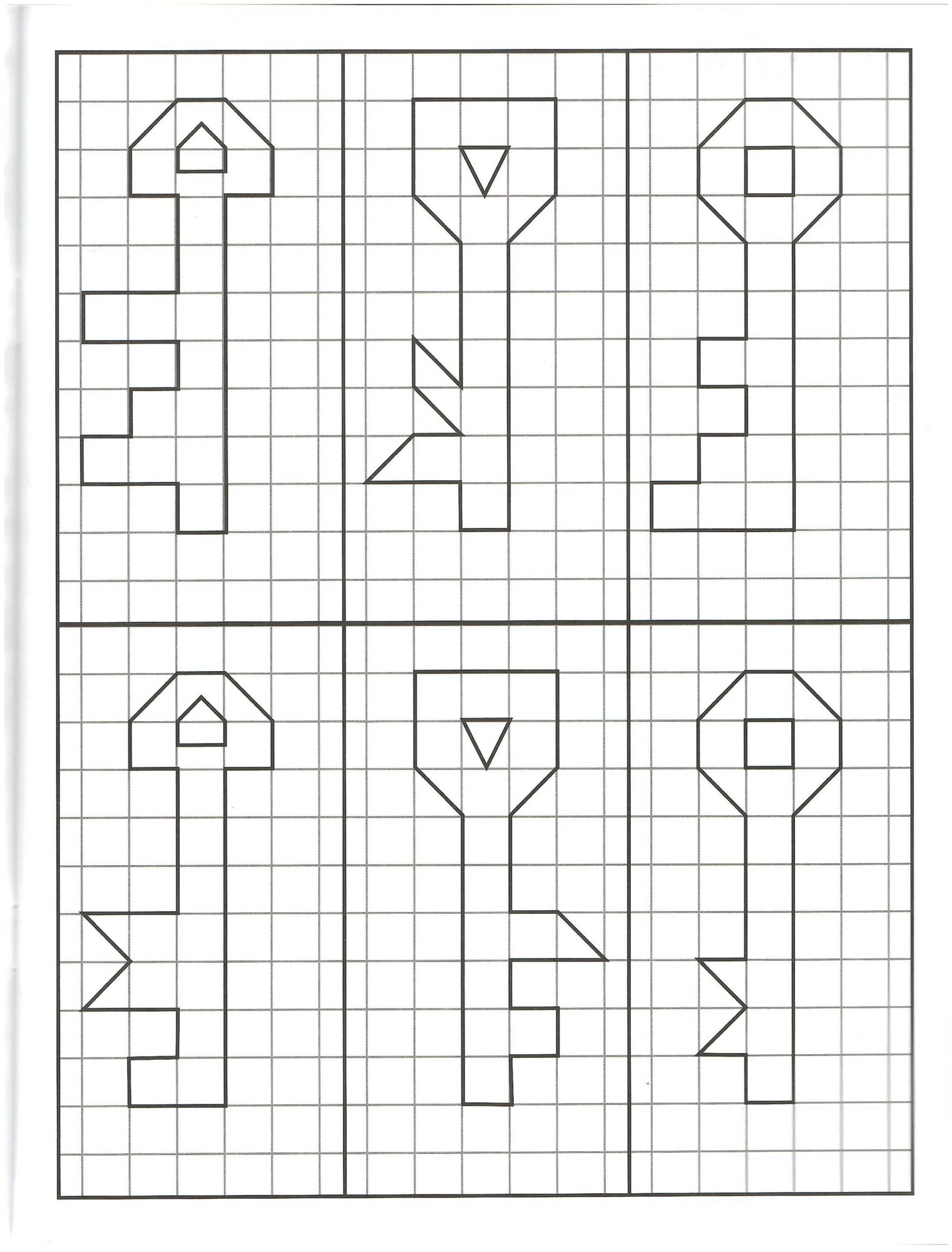 Задача этого квеста: научить детей использовать линейку для измерения, пользоваться глазомером и рисовать орнаменты (ключи) по клеточкам, соблюдая масштаб.