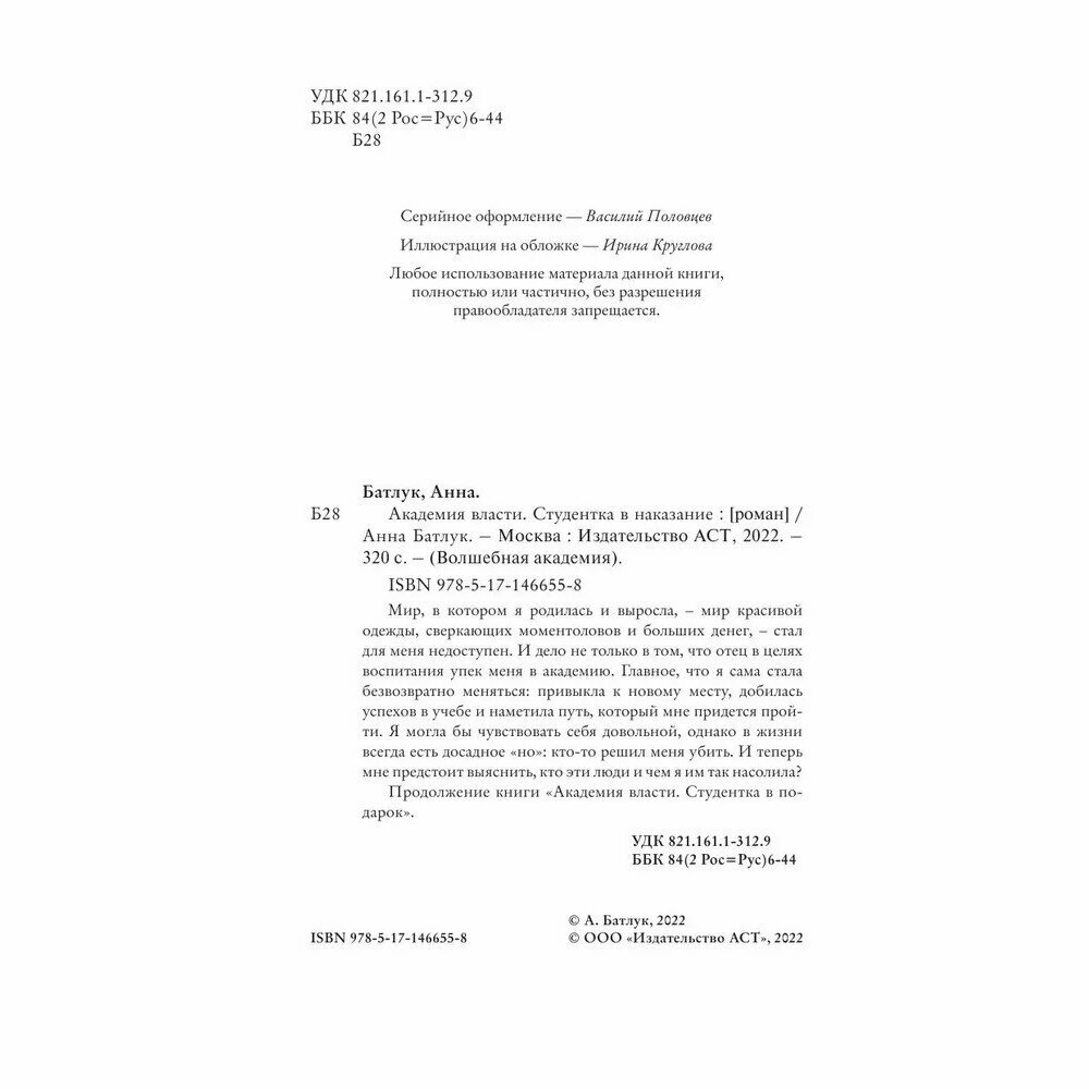 Академия власти. Студентка в наказание (Батлук Анна Викторовна); ИЗДАТЕЛЬСТВО "АСТ", 2022