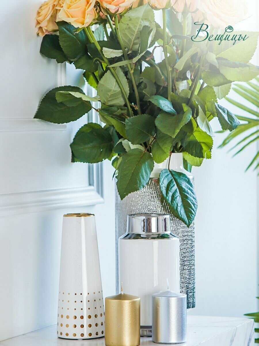 Декоративная ваза "Арт Деко" привносит в дом джаз! Мягкий бас Луи Армстронга или клавишные ритмы Дюка Эллингтона - у владельцев вазы всплывают разные образы при взгляде на вазу в интерьере. Стоят там праздничные тюльпаны или вербные веточки, ваза сможет дополнить образ. Белый цвет позволяет ей быть сдержанной и универсальной, а золотистый узор оживляет, заставляет интерьер звучать.3 идеи, как использовать вазу "Арт Деко" Вещицы:1. Простой декор в стиле Джапанди. Хотя стиль не приветствует декор ради декора, он все же тяготеет к натуральным материалам и цветам. Доломит - материал, добываемый в природе, и в естественном цвете с небольшими акцентами ему самое место на полке.2. Размещение декоративных цветов. Так как доломит не любит воду, внутри вазы будут органично смотреться ветки. Например, у бренда "Вещицы" есть наборы сухоцветов и веток эвкалипта из фоамирана.3. В темных интерьерах белая ваза подчеркнет строгость обстановки, но при этом добавит уюта.Размер вазы: 8 х 20 см. Делитесь в отзывах своими интерьерами с тигровой вазой! Самые интересные мы опубликуем в социальных сетях, так что обязательно пишите свой ник.