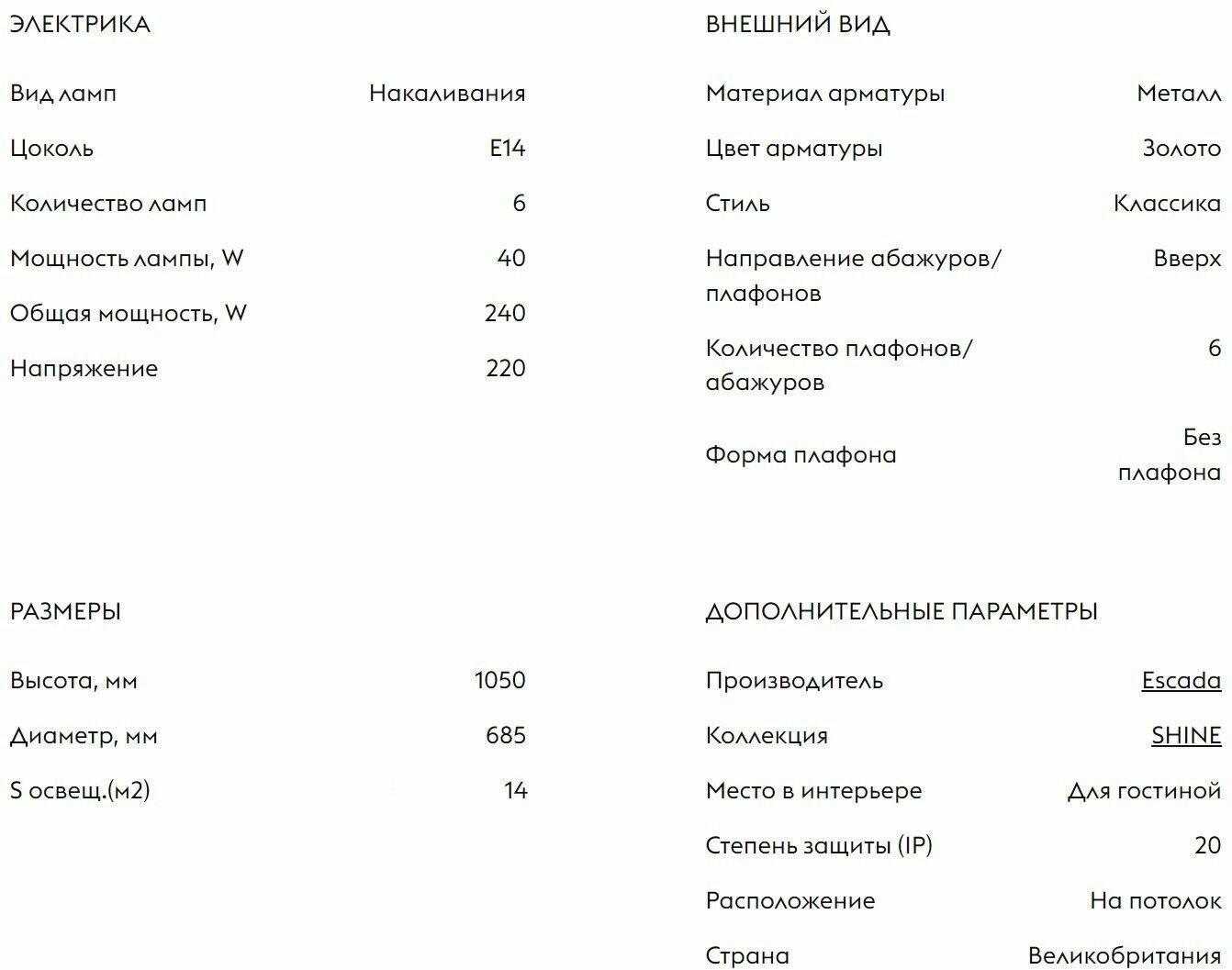 На сегодняшний день товар «Подвесная люстра Escada SHINE 678/6PL Gold» можно купить с кешбеком в 1 магазине: Яндекс.Маркет