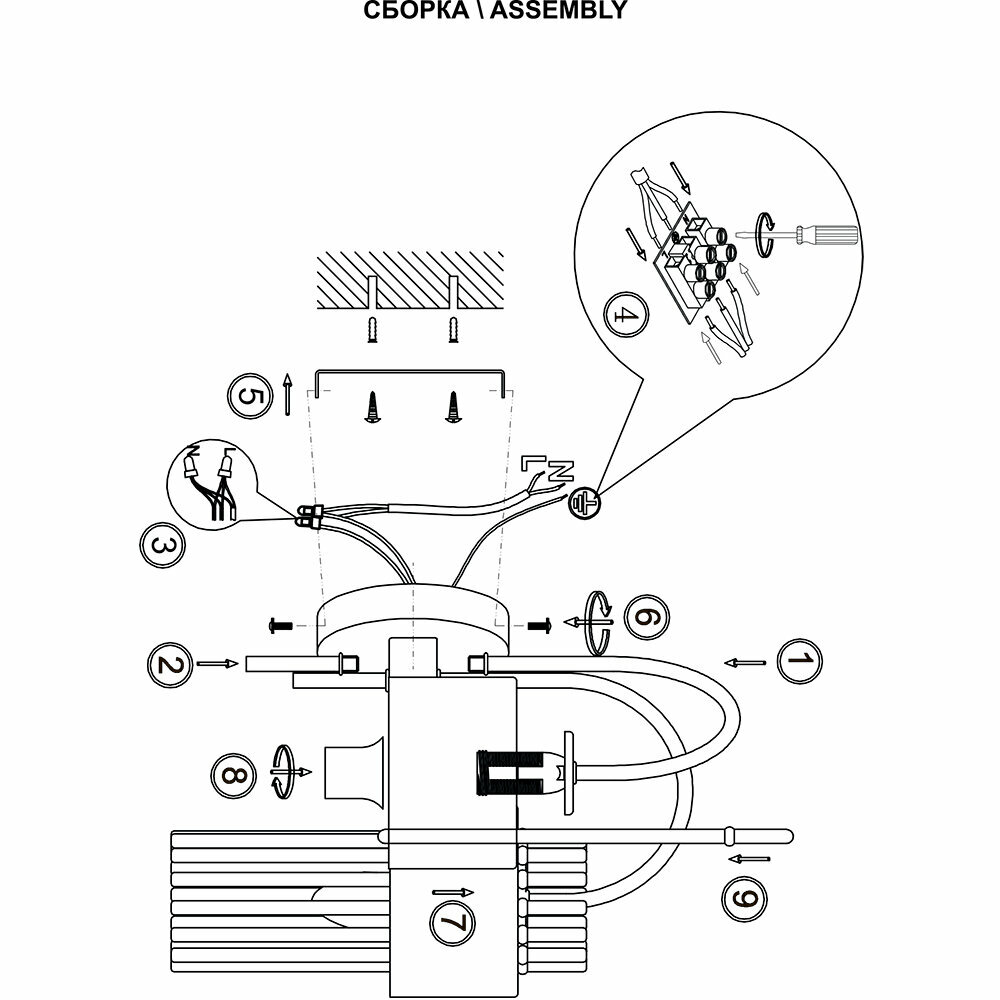 | Направление плафонов | Вниз |