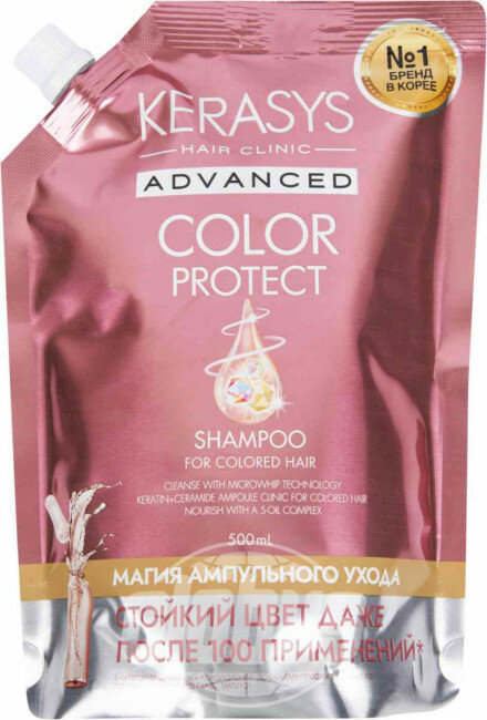 Ампульный Шампунь Kerasys Advanced "Защита цвета" с церамидными и кератиновыми ампулами запасной блок 500 мл (ЭХ99989434431)