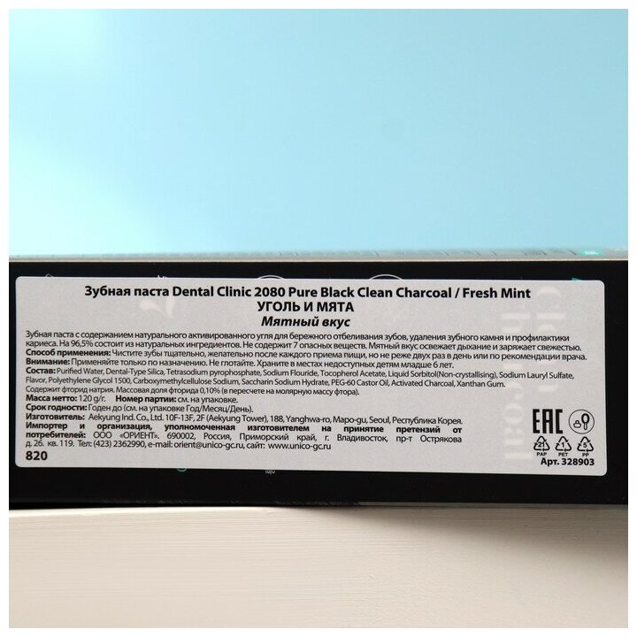 | Состав набора | ЗУБНАЯ ПАСТА "2080" Дентал Клиник Уголь и мята 120г |