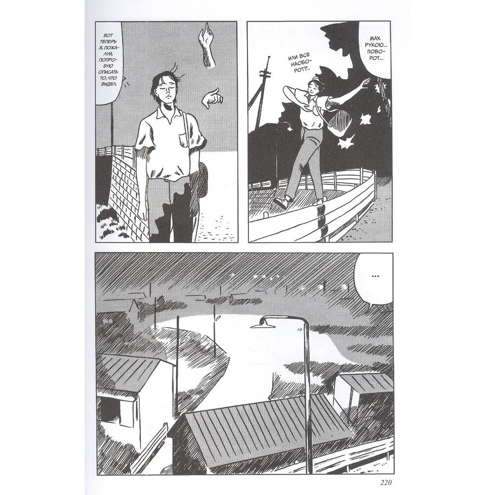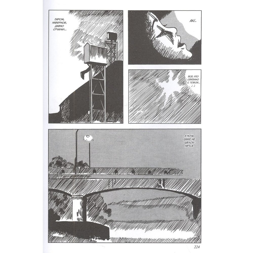 Манга, довольно специфична и для неё трудно подобрать читателя, однако если он найдётся, она однозначно будет для него подарком. Касаемо сюжета, его нет. Вернее есть, но читатель должен войти в разум писателя, что б понять что он хочет донести. Рисунок иногда приятен и прямо таки зовёт своим одиночеством и теплом, которое исходит из окон ночного городка. Именно облики жилых поселений и таят в себе некую привлекательность, а вот персонажи, лица, движения, не имеют проработки, и напоминают дешевые японские мультики 90 х, хотя в книге и есть довольно детализированные развороты, и как правило на них расчлененка или другая жесть, на которую противно смотреть. Книга в твёрдом переплёте, суперобложка, 230 страниц любительского артхауса, но по настоящему вкусить данное творение может не каждый, поэтому прежде чем покупать данную мангу, обязательно ознакомьтесь с обзорами на неё.