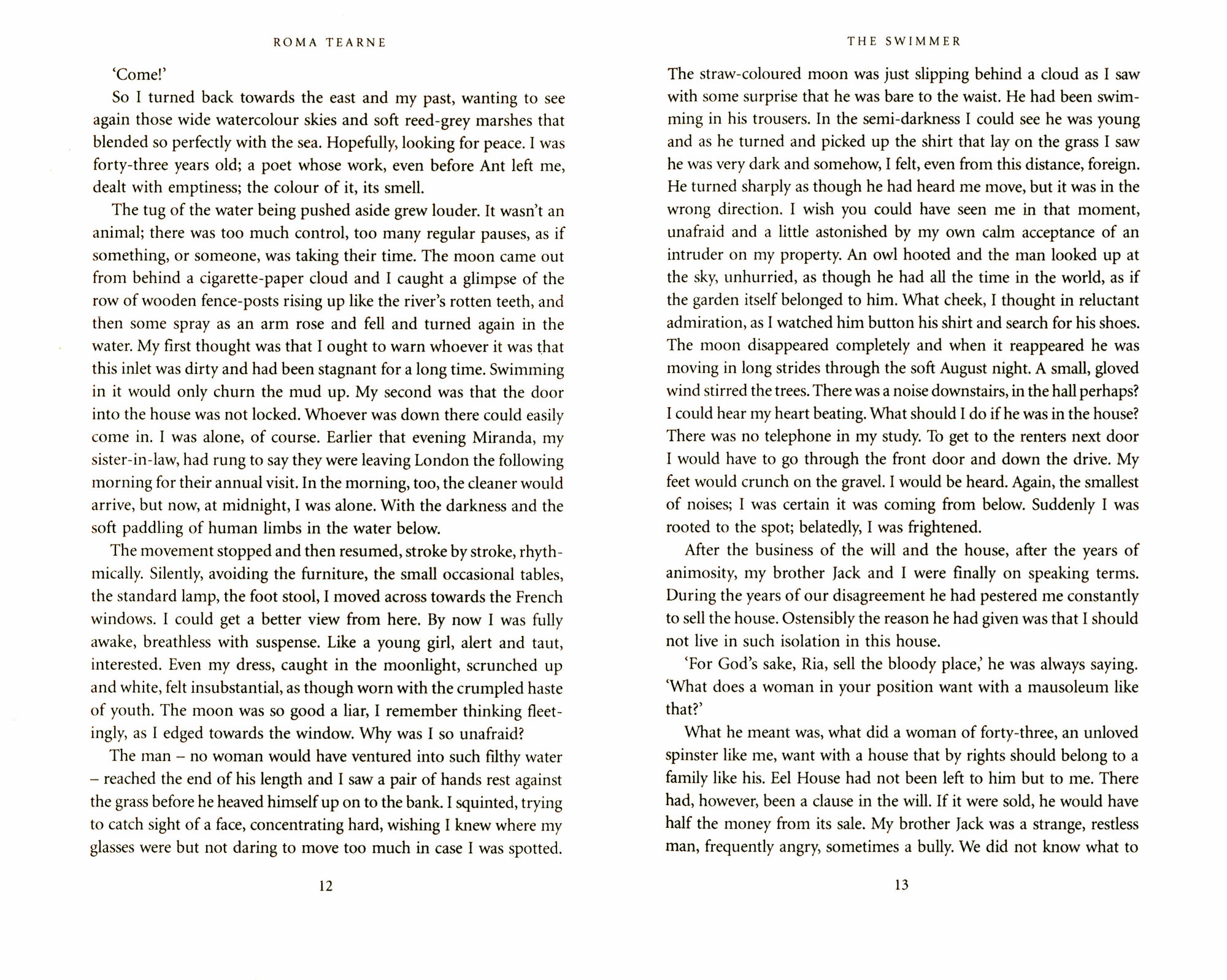 Forty-three year old Ria is used to being alone. As a child, her life changed forever with the death of her beloved father and since then, she has struggled to find love.That is, until she discovers the swimmer.