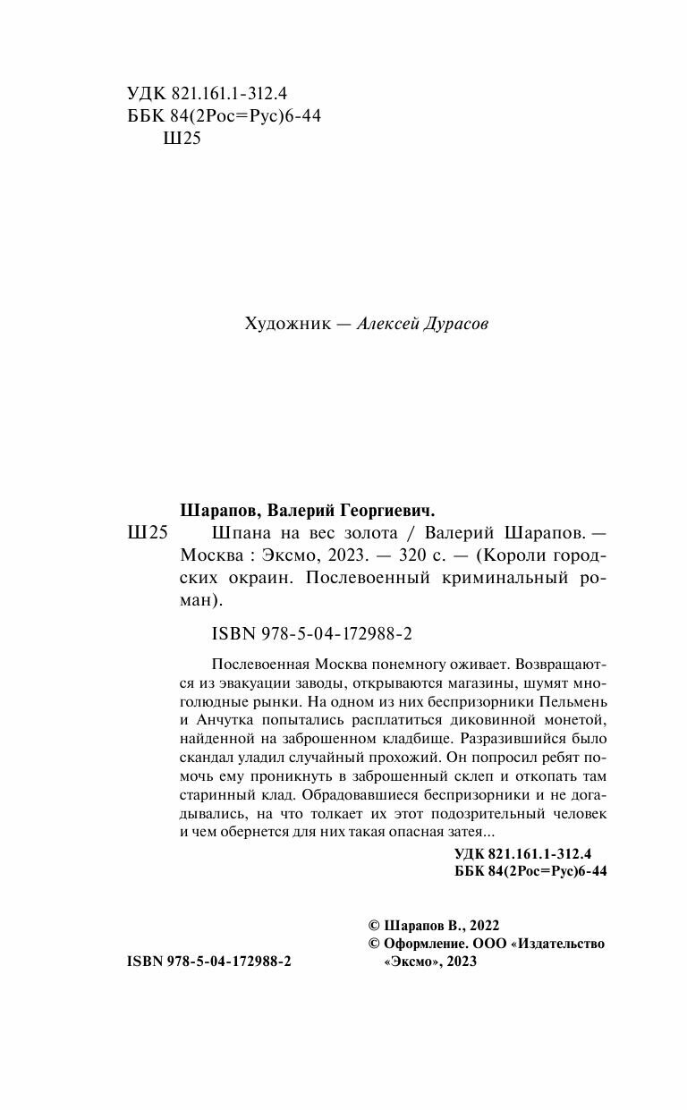 Книга: Шпана на вес золота (Валерий Шарапов); Эксмо, Редакция 1, 2022
