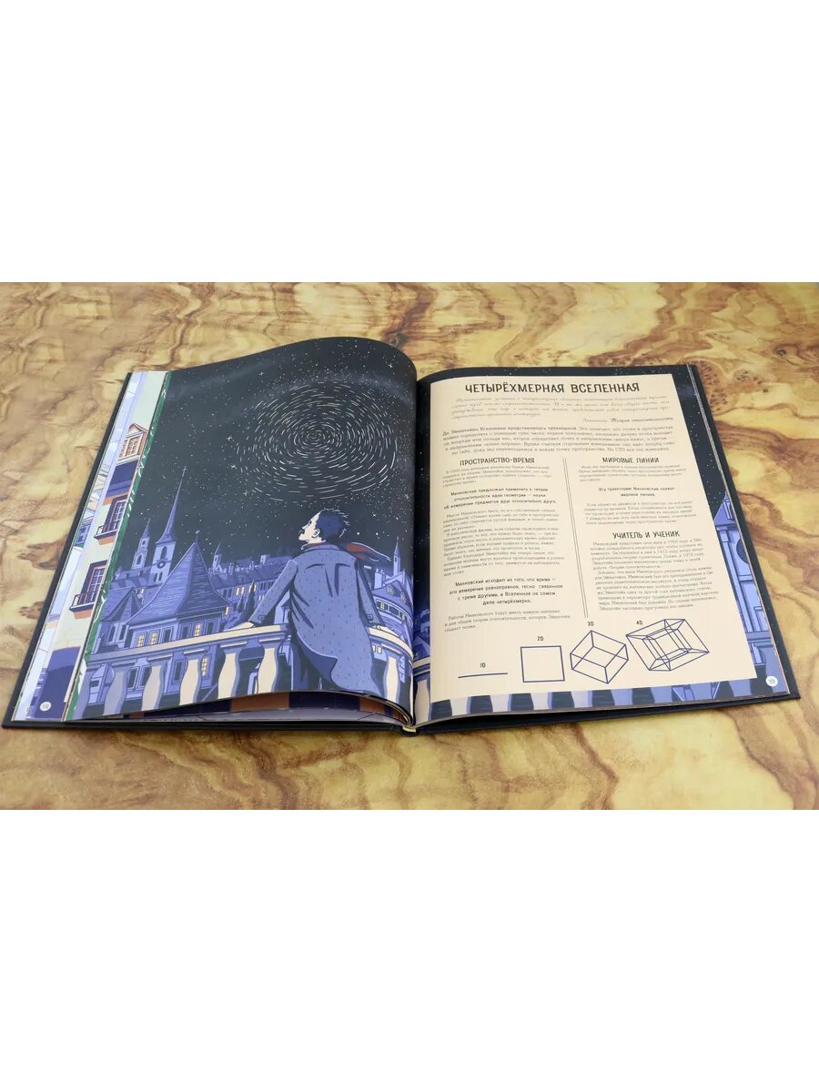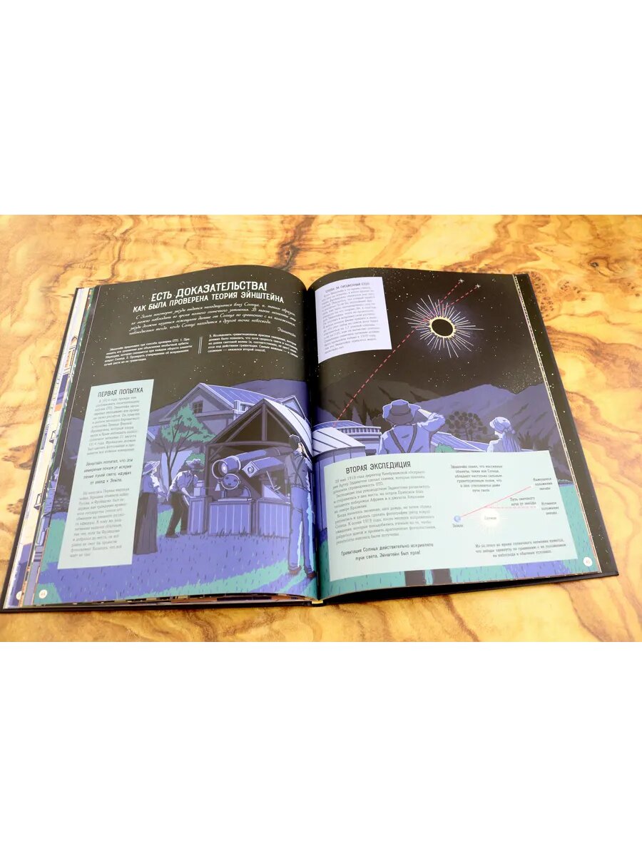 Книга Уилкинсона уникальна. Она поражающе большого размера, яркая, качественно отпечатана. Но главное не это, главное — изложение и то, как доступно преподнесен материал. Тут мы узнаем и о биографии великого Альберта Эйнштейна, о его пути, и о его идеях, в том числе о теории относительности. Причем написано реально доступно и довольно подробно. Прекрасное издание, очень хороша и для подарка, и для домашней коллекции. Приятная мелочь в виде ляссе только подчеркивает положительное впечатление.