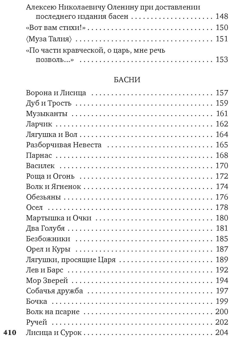 Иван Андреевич Крылов вошел в историю литературы прежде всего как величайший баснописец. Его короткие, поучительные, ироничные басни знают с самого детства и перечитывают с удовольствием. Меткие цитаты из них давно уже стали крылатыми выражениями, а персонажи Крылова полюбились многим поколениям читателей. «Конечно, ни один француз не осмелится кого бы то ни было поставить выше Лафонтена, но мы, кажется, можем предпочитать ему Крылова. Оба они вечно останутся любимцами своих единоземцев», — говорил Пушкин. Однако в творчестве Крылова представлены самые разные поэтические жанры: это и переложения псалмов, и философские размышления, и дружеские послания, и эпиграммы, и стихотворения на случай, и любовная лирика. Эти произведения занимают значительное место в настоящем издании и дают возможность читателям познакомиться с разными гранями таланта Крылова — поэта, который не только ввел в литературный обиход народную речь, но и во многом предвосхитил более поздние открытия русской лирики.