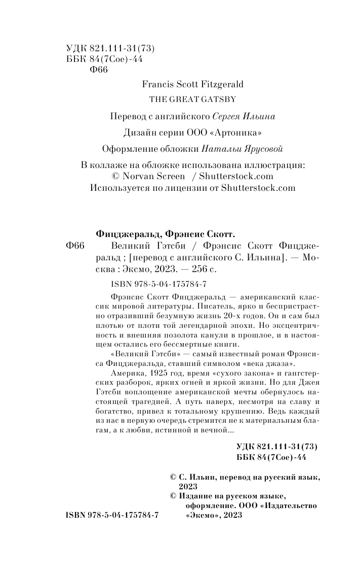 Книга: Великий Гэтсби (Френсис Скотт Фицджеральд); Эксмо, Редакция 1, 2022