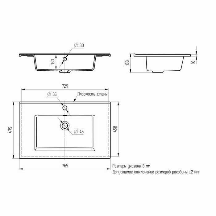 | Ширина раковины | 765.000 |