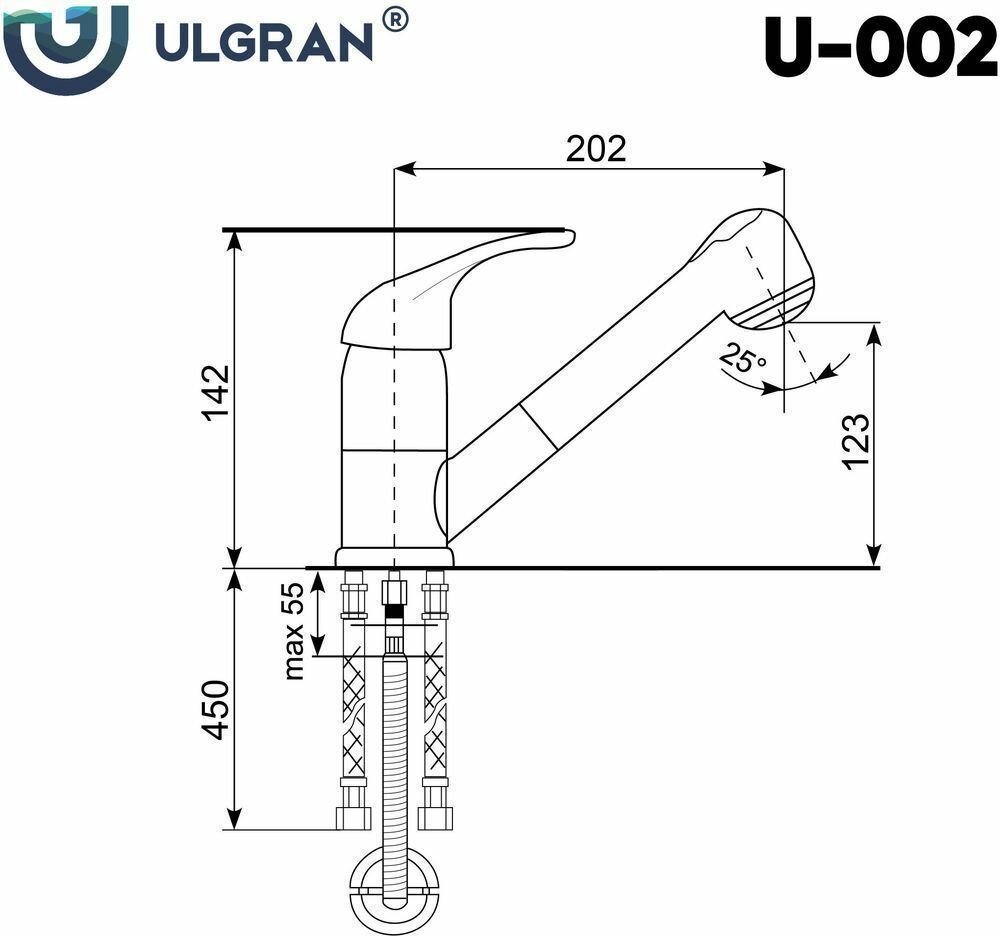 | ULGRAN U-002 - кухонный смеситель с низким выдвижным изливом, имеющий два режима подачи воды | стандартный и режим душ. |