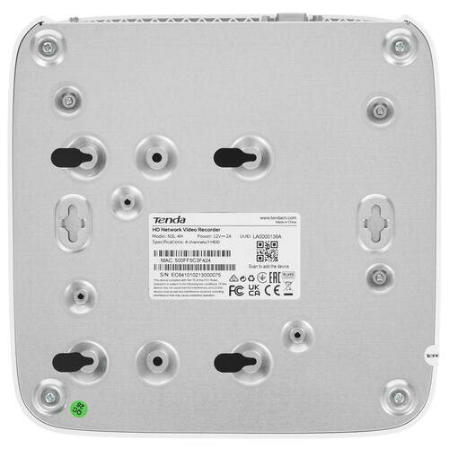 IP-видеорегистратор Tenda N3L-4H в компактном белом корпусе позиционируется как центральный компонент для небольшой системы видеонаблюдения, которая объединяет до 4 сетевых камер. Устройство с поддержкой 4 параллельных каналов записи может записывать видеофайлы в разрешении до 3840x2160 пикс. Для сохранения видеофайлов доступны кодеки H.264, H.264+, H.265 и H.265+, а наибольшая поддерживаемая частота кадров составляет 30 к/с. Модель допускает старт записи в автоматическом режиме или по сигналу тревоги с датчика. Видеорегистратор для IP-камер видеонаблюдения Tenda N3L-4H подключается к локальной сети через Ethernet-порт с поддержкой скорости передачи данных до 100 Мбит/сек. В качестве модуля долговременной памяти устройство использует SATA-диск объемом до 10 ТБ. Для вывода изображения с камер регистратор предлагает видеовыходы 1x HDMI и 1x VGA, к которым можно присоединить монитор.