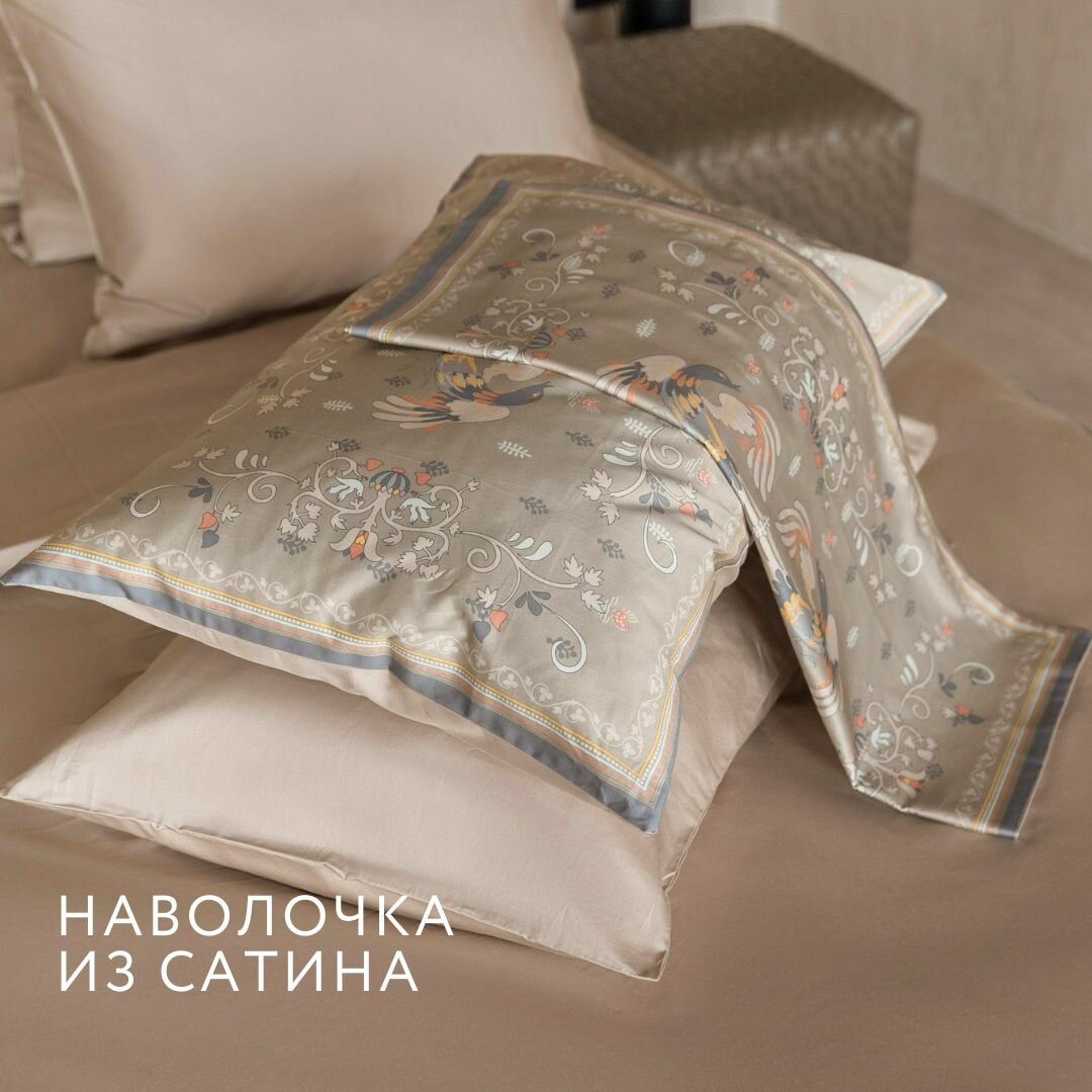 Наволочка Mollen Сказки. Мезенская роспись в песочно-бежевом сатин (05.01.03.04)